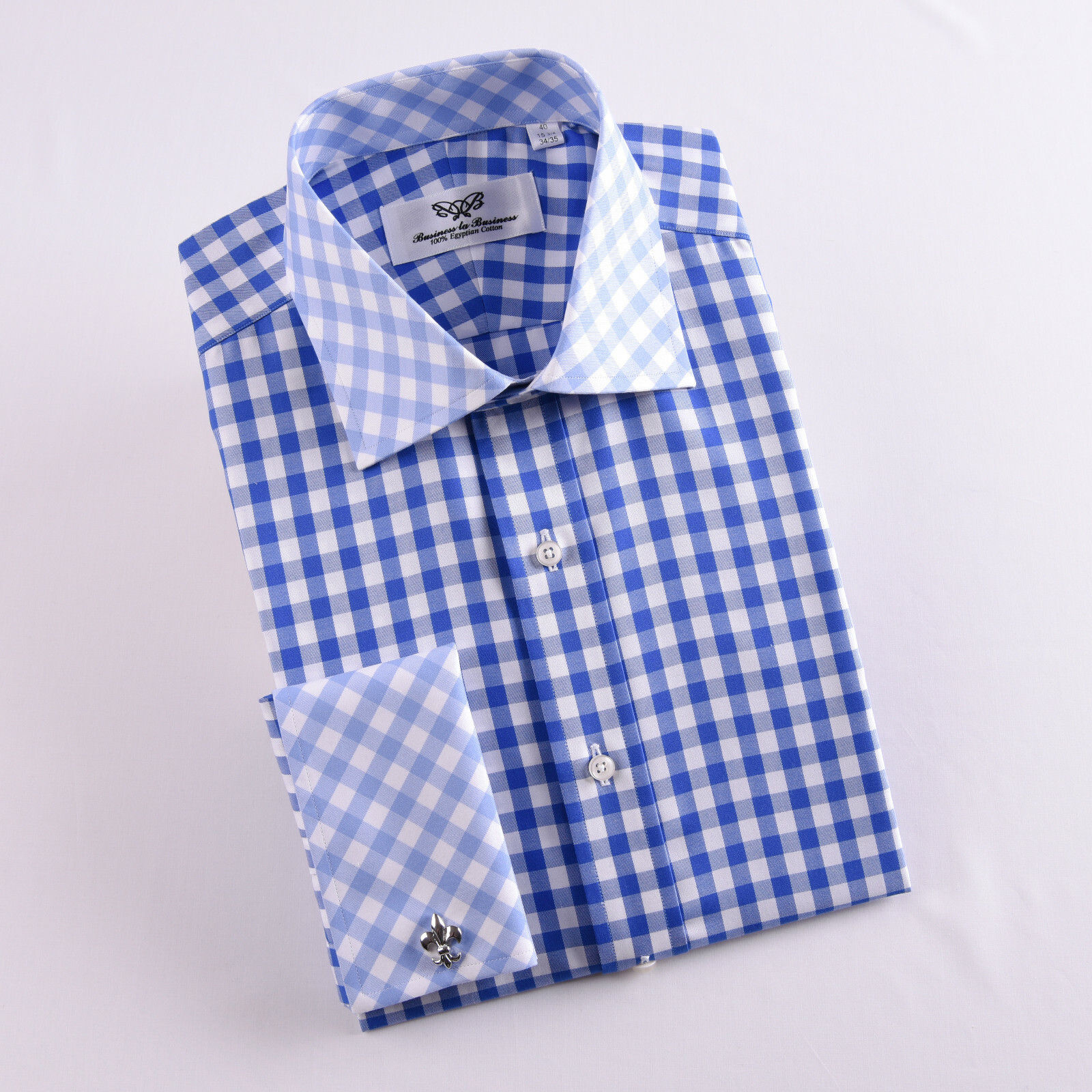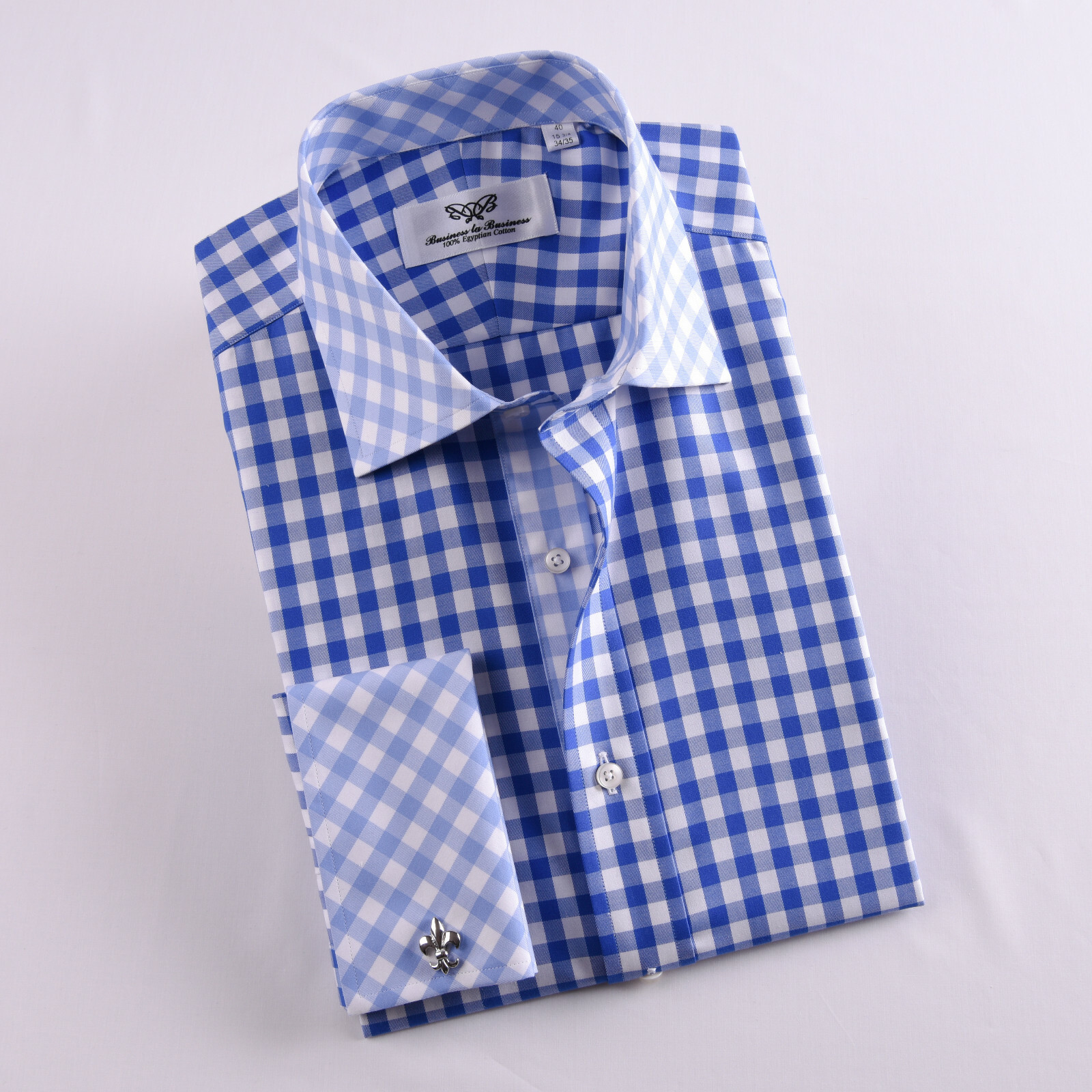 Blue Check Designed Business Shirt Easy Iron Wrinkle Free Contrast Collar Cuff