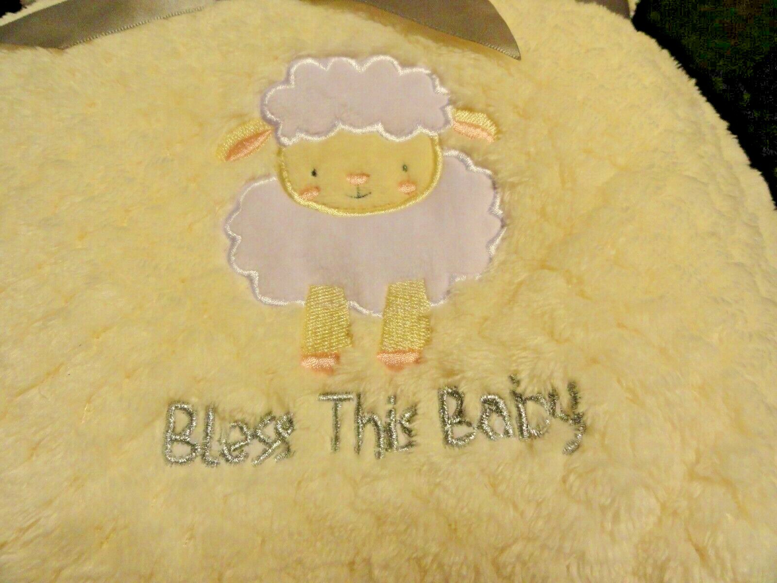 new BABY PLUSH Blanket Off White BLESS THIS BABY appliqued LAMB Super soft