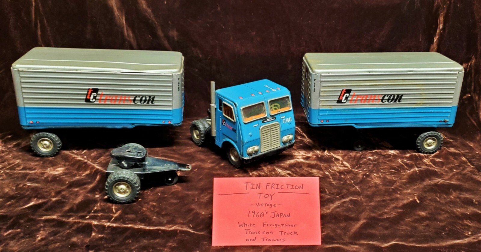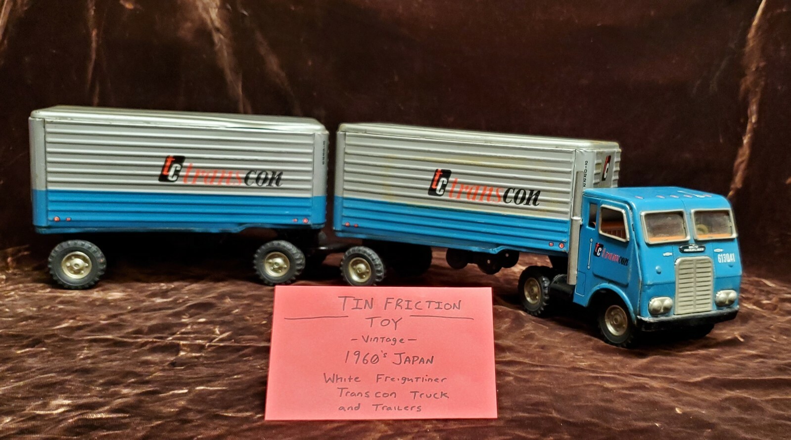 VINTAGE TIN TOY TRANSCON SEMI TRUCK W/ 2 TRAILERS FRICTION TOY JAPAN