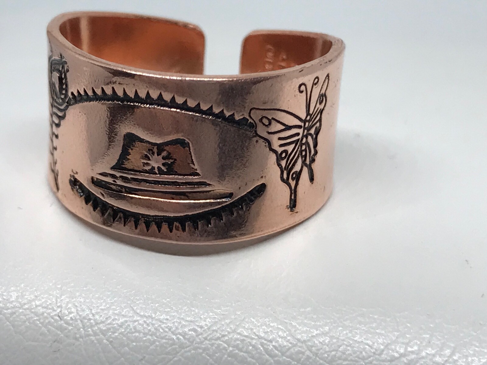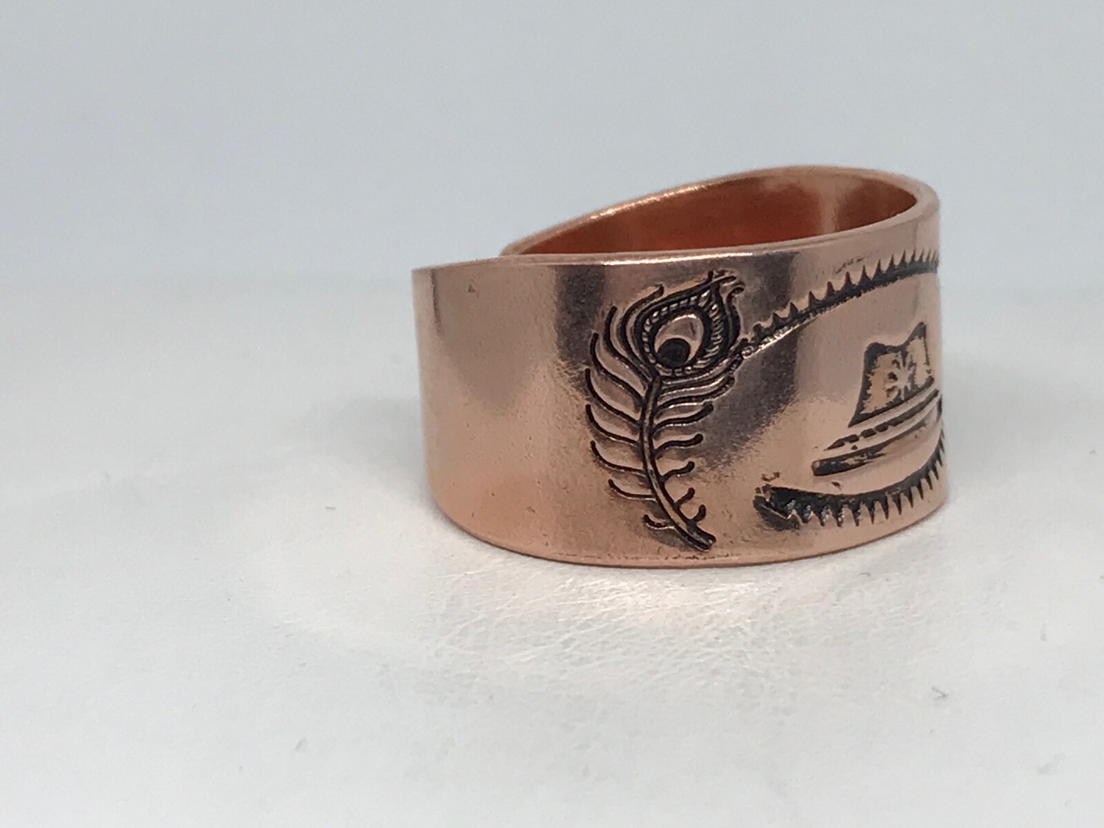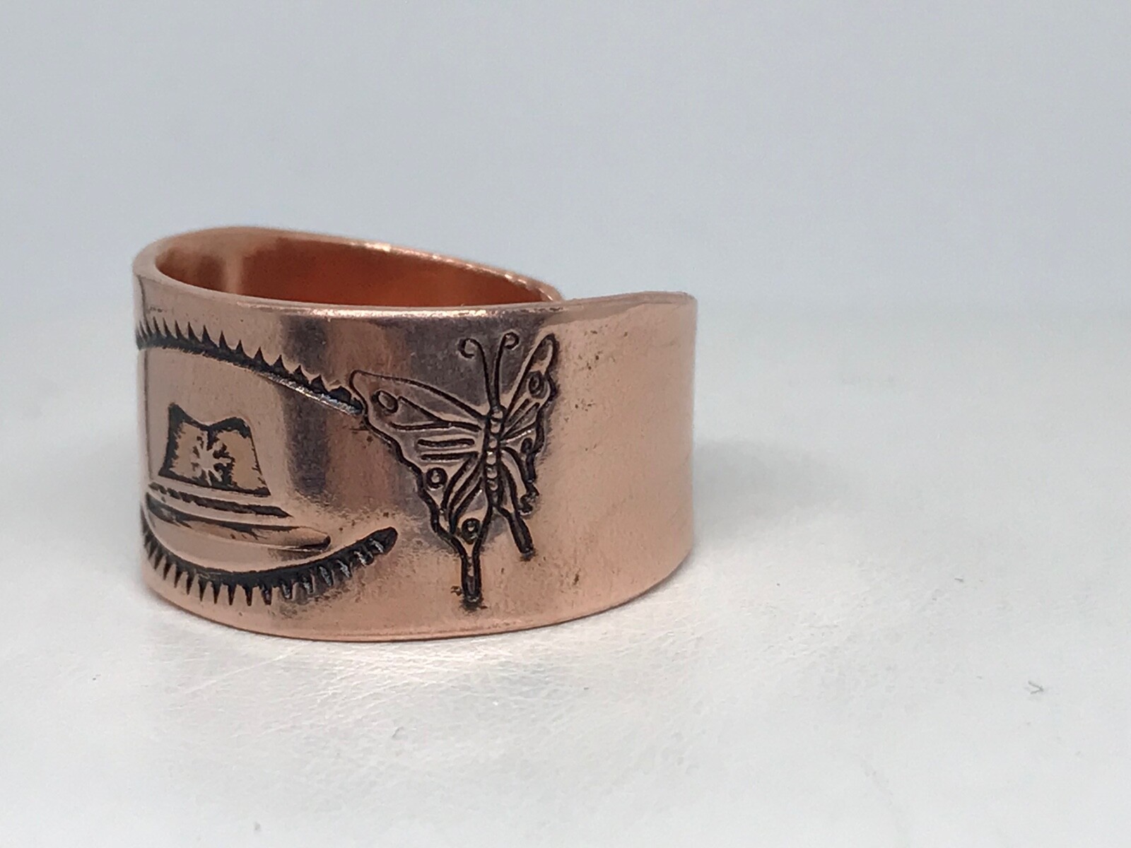COPPER RING Open Back Hand MADE HAT-Peacock Feather-Butterfly CR-078