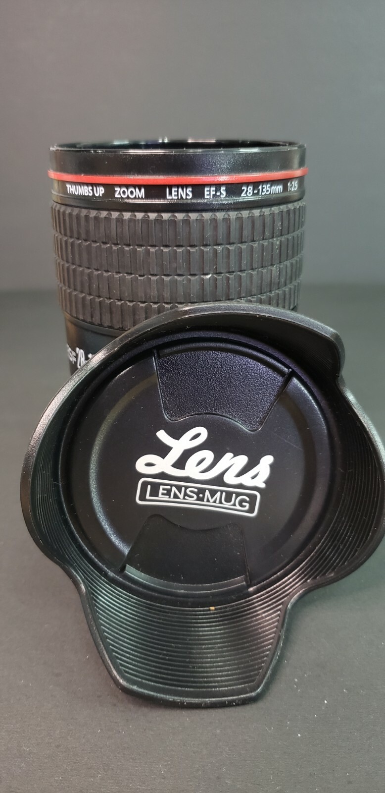 • Preowned Camera Lens Mug with Cookie Holder Canon EF 24-105mm Coffee Mug Cup