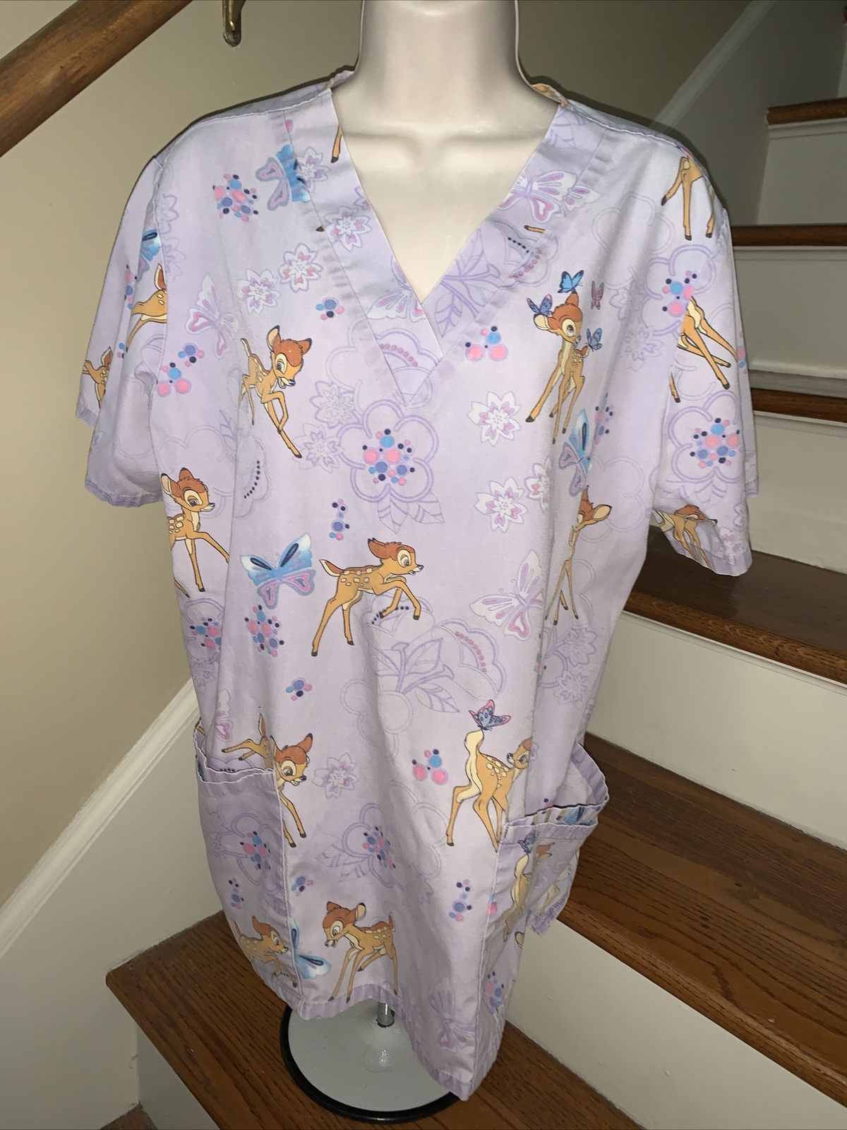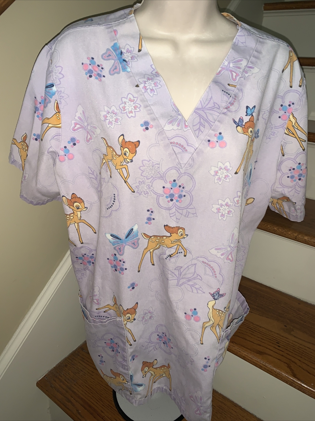 как выглядит The Wonderful World of Disney BAMBI BUTTERFLY Scrubs Top Shirt Size M  tb37 фото