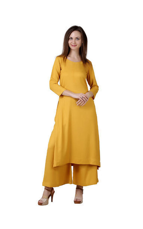 Beautiful Plain Yellow Readymade Salwar Kameez Rayon Palazzo Kurta Custom Stitch
