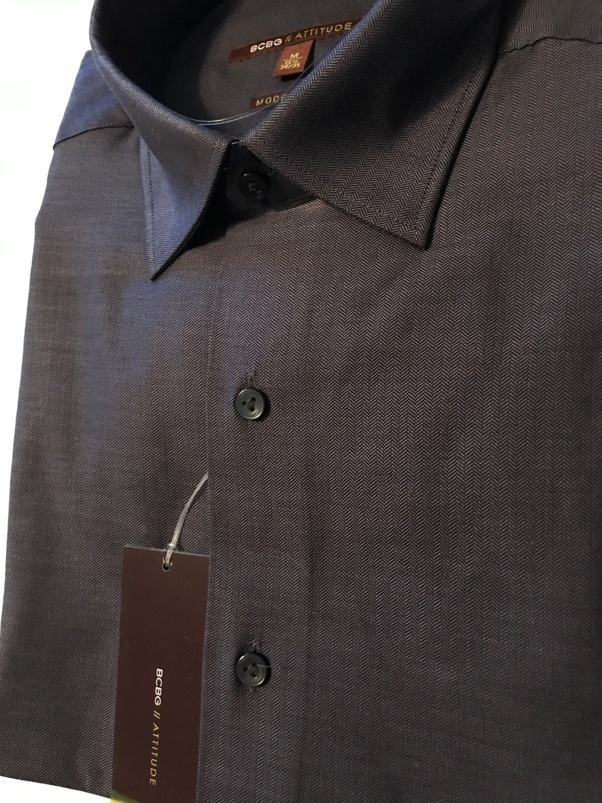 как выглядит BCBG Modern Fit 100 Cotton Spread Collar Gray Dress Shirt 15 1/2 - 34/35 фото