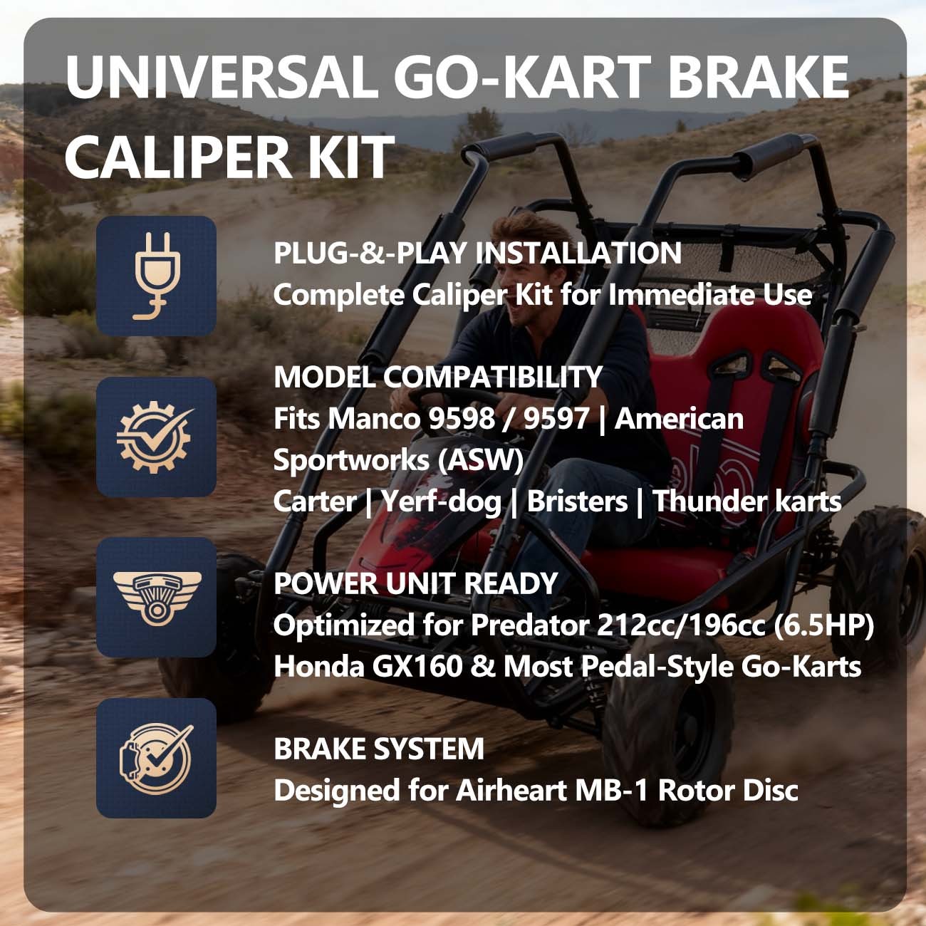 Go Kart Mechanical Brake Caliper with Bracket for Rotor Disc Go Kart Fun Cart