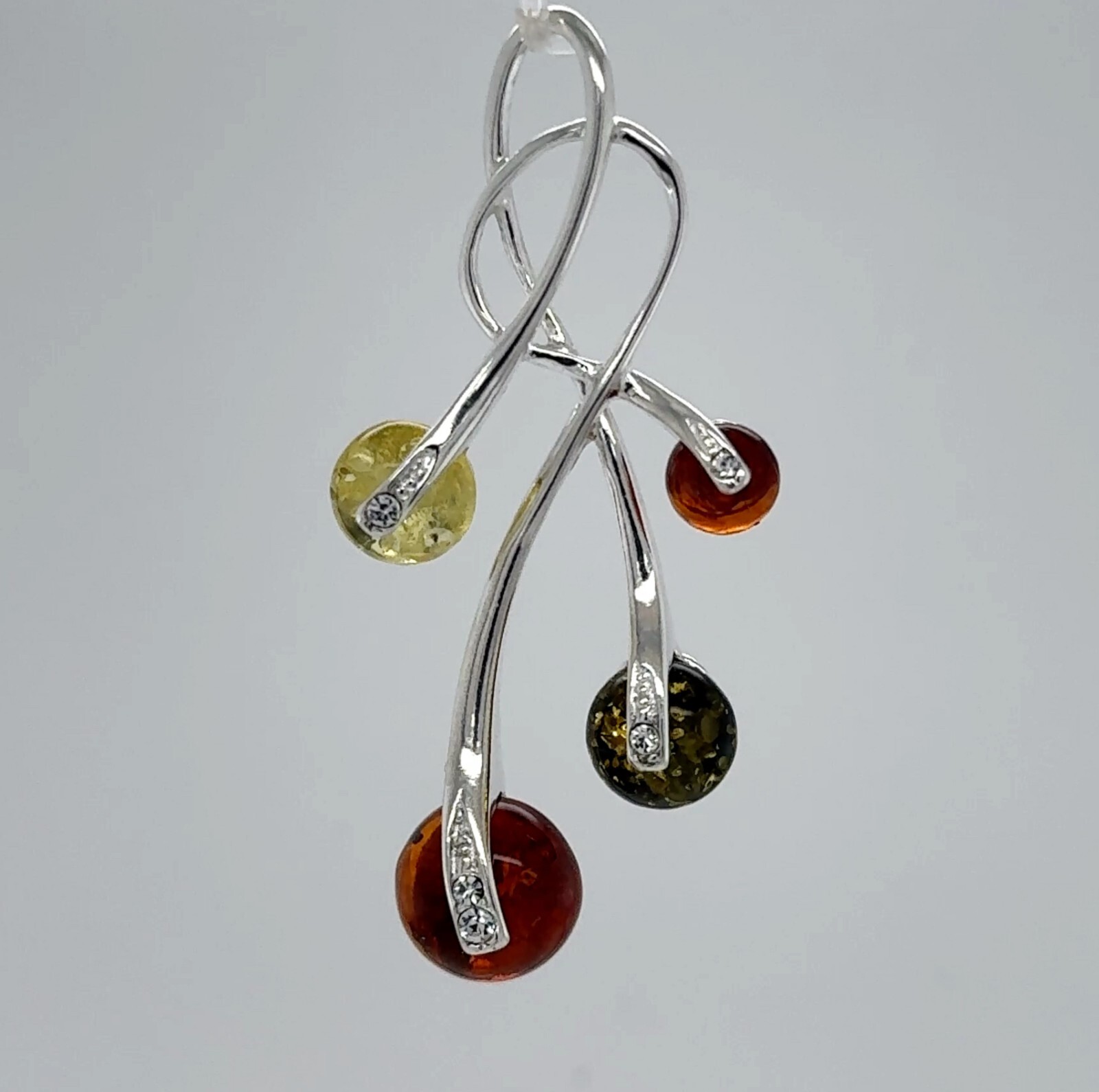 Multi-Color BALTIC AMBER Swirl Pendant - 925 STERLING SILVER - Poland 1434e