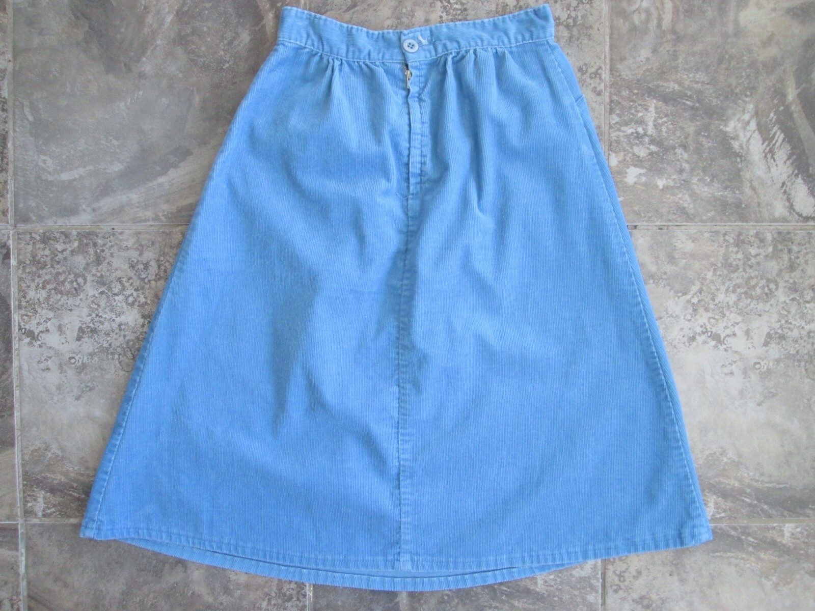 как выглядит Vintage Hillbilly Corduroy Skirt 24" Waist Blue A-Line Knee Farm Country Modest фото