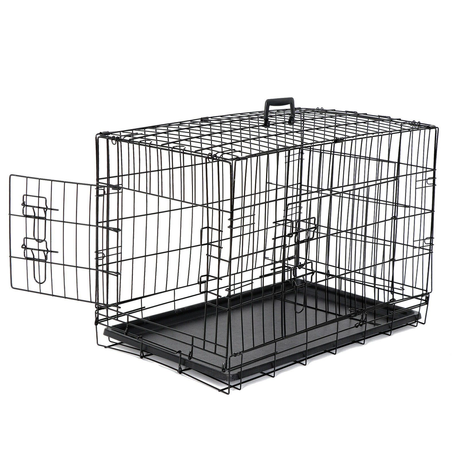 30 Folding Metal Dog Crate Double Doors Dog Crates Durable Black Dog Cage Pet