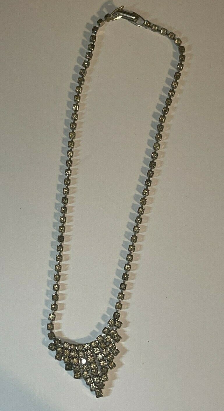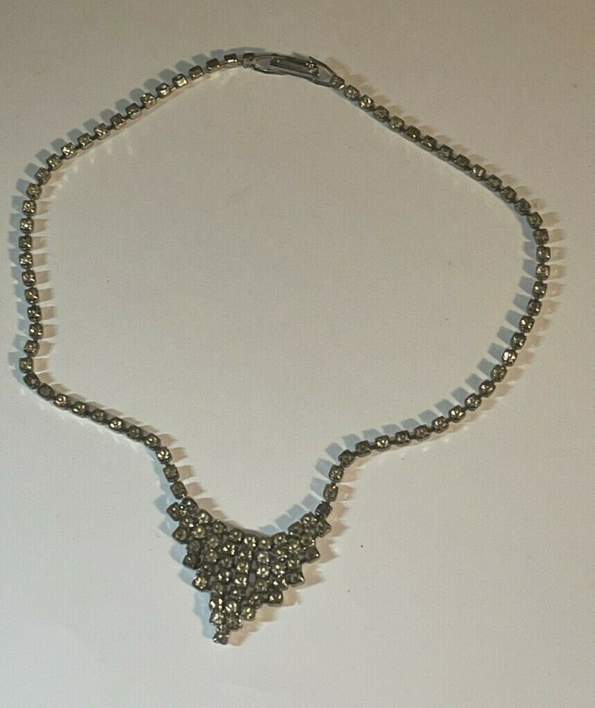 VINTAGE 50 S CRYSTAL GLASS RHINESTONE BEAD DROP BIB CHOKER NECKLACE