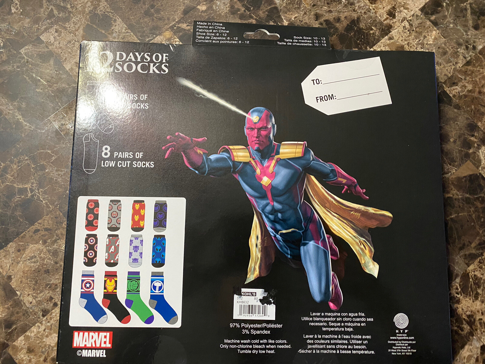 как выглядит Marvel Avengers 12 Days Of Socks Mens Shoe Size 6-12 NEW Gift Box фото