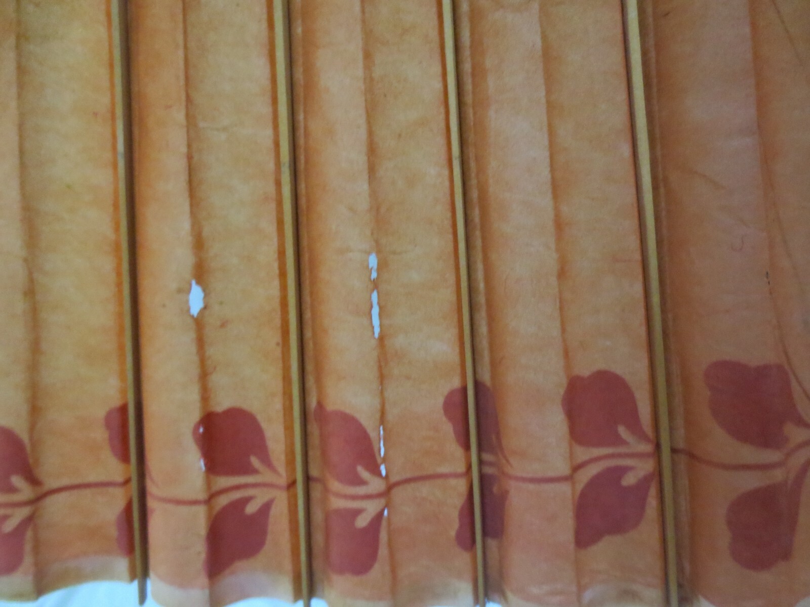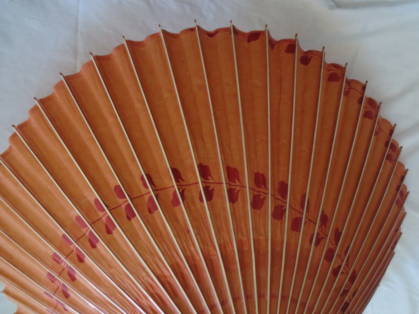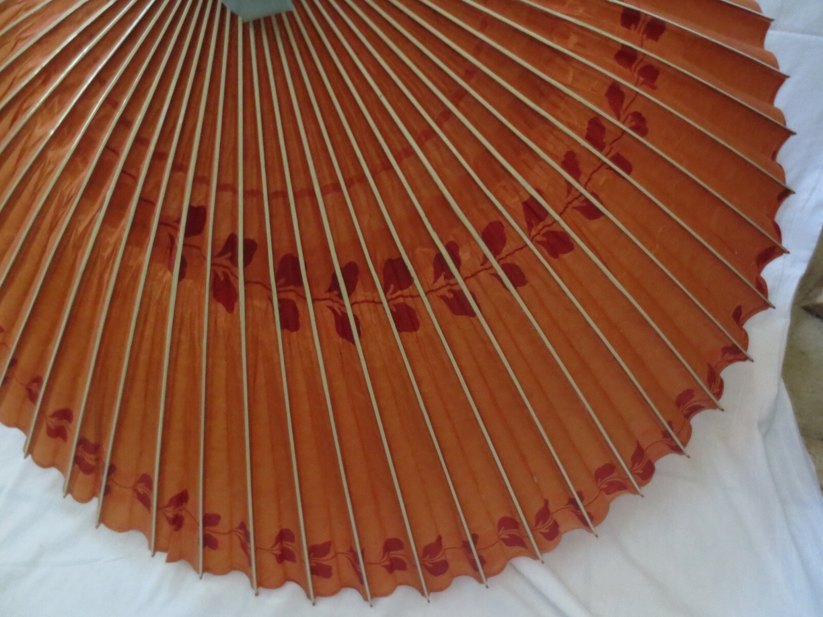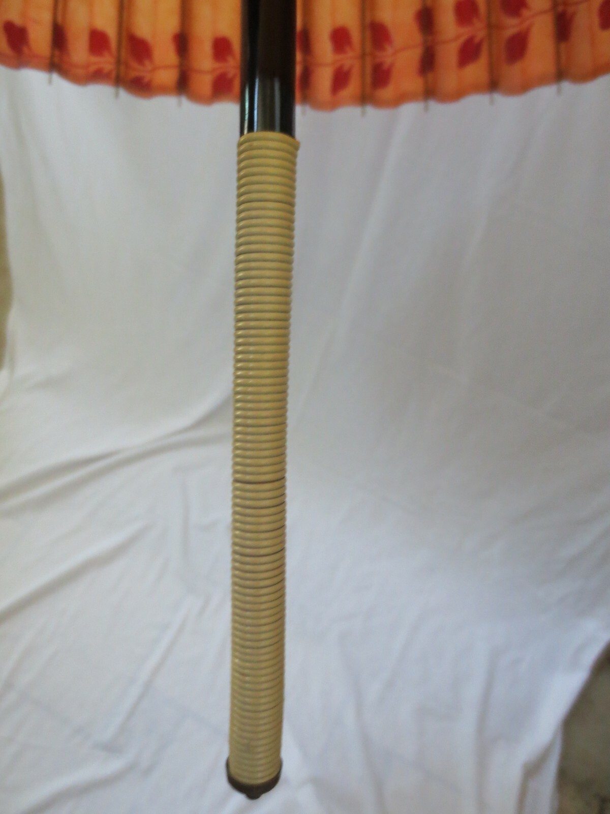 Vtg JAPANESE UMBRELLA PARASOL Lacquer Rice Paper Bamboo Wood Orange Spiral 37