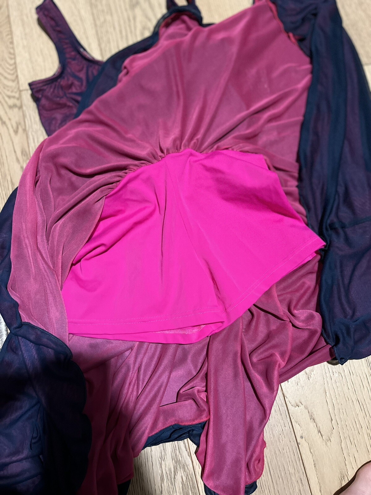 как выглядит Body Wrappers Premiere Ballet Dance Blue Pink Mesh Dress Ladies Medium NWT фото