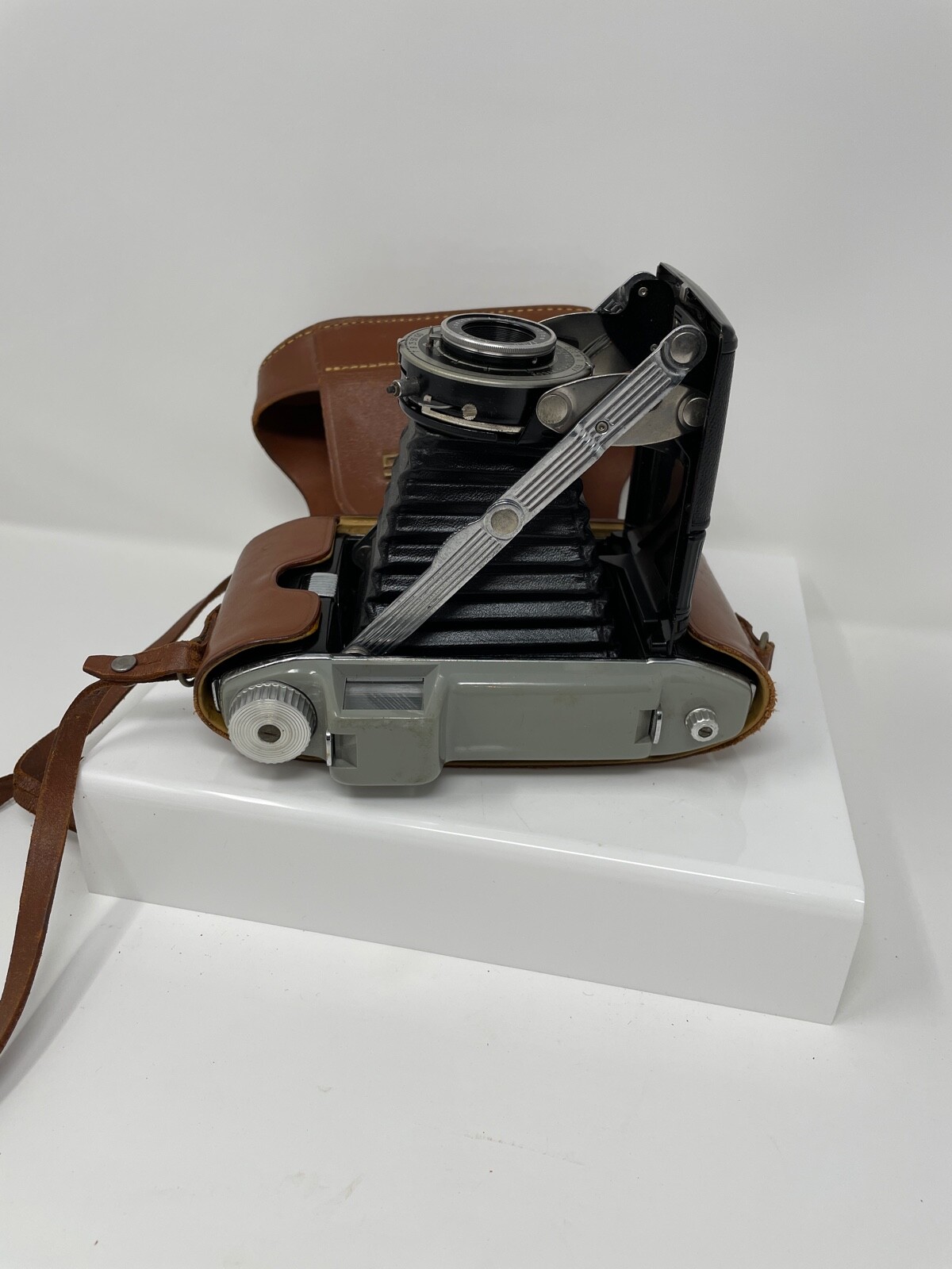 как выглядит Kodak Tourist Camera Folding Lens In Brown Leather Case USA Untested фото