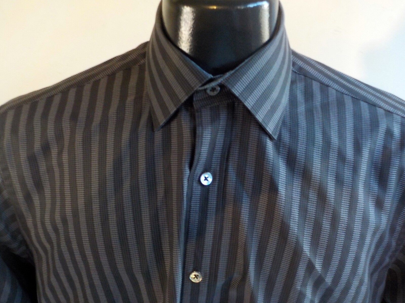 как выглядит BUGATCHI Uomo Striped Long Sleeve Cotton Shirt SZ M Classic Fit Black/Gray фото