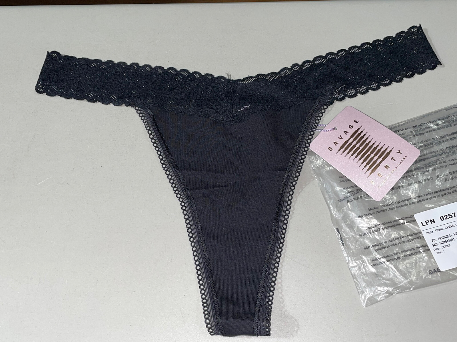 как выглядит Savage X Fenty Womens Cotton Essentials Thong Undie Caviar Black Size Large фото