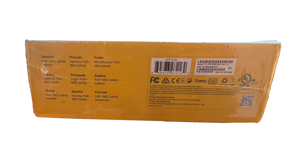 Tp-Link Poe Injector 2 Gigabit ports, Power Over Internet TL-POE160S