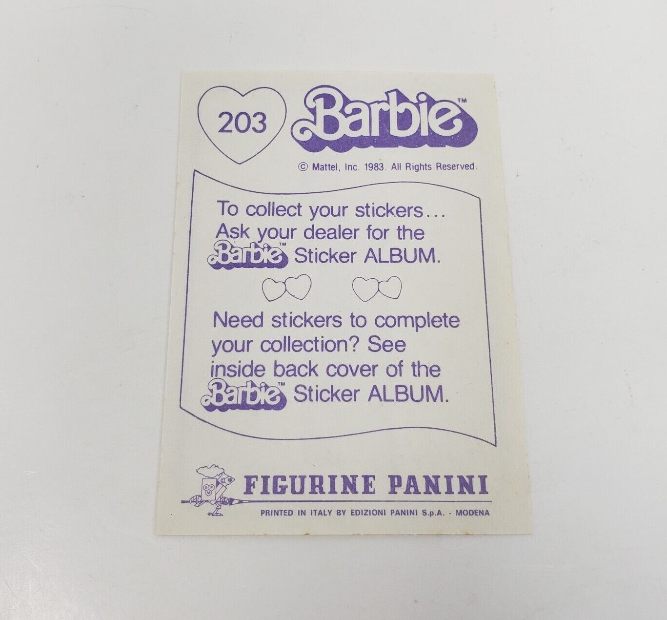 VINTAGE 1983 MATTEL FIGURINE PANINI BARBIE ALBUM STICKER NOS NEW OLD STOCK 203