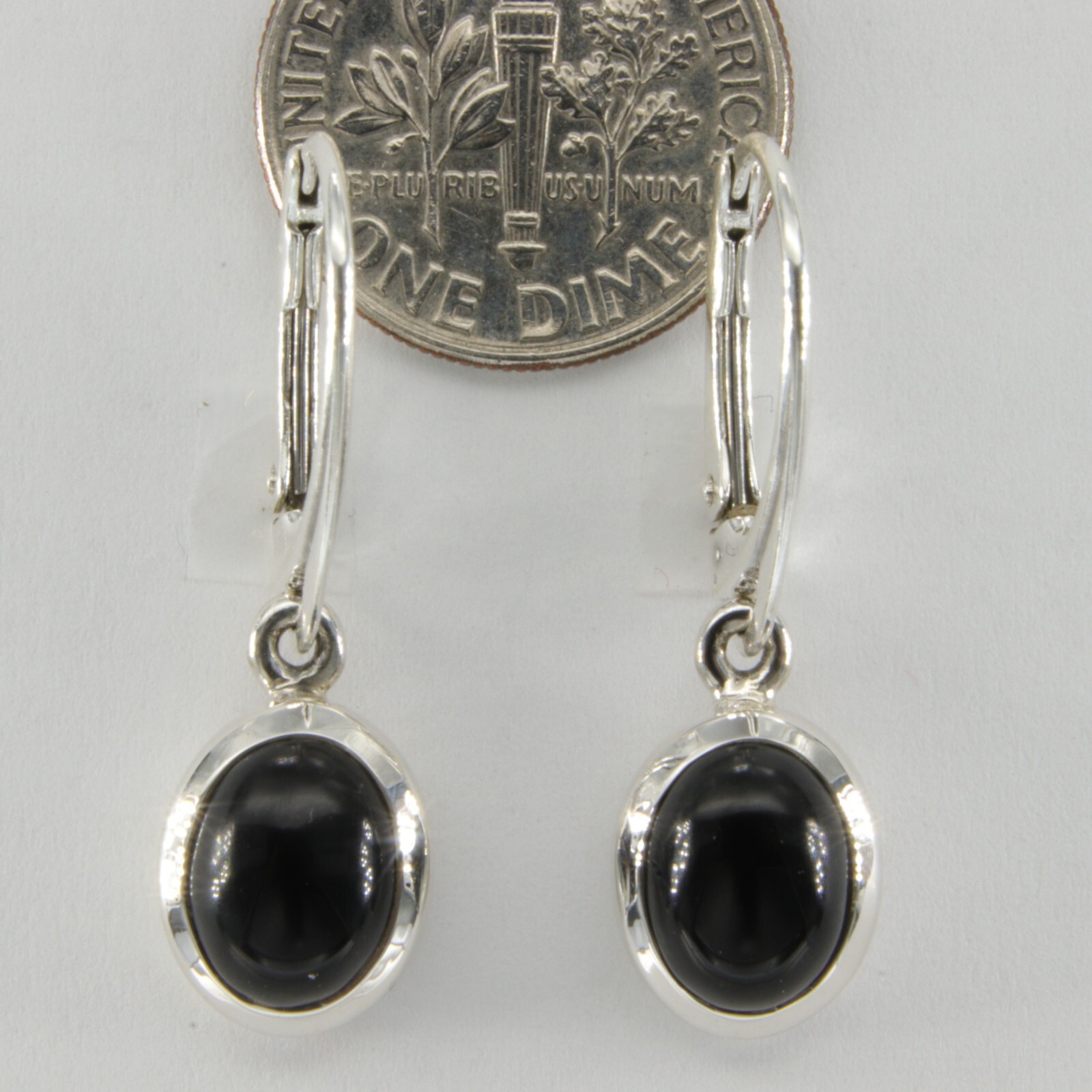 как выглядит Natural Oval BLACK ONYX Dangle Earrings - 925 STERLING SILVER - Leverback 32e фото
