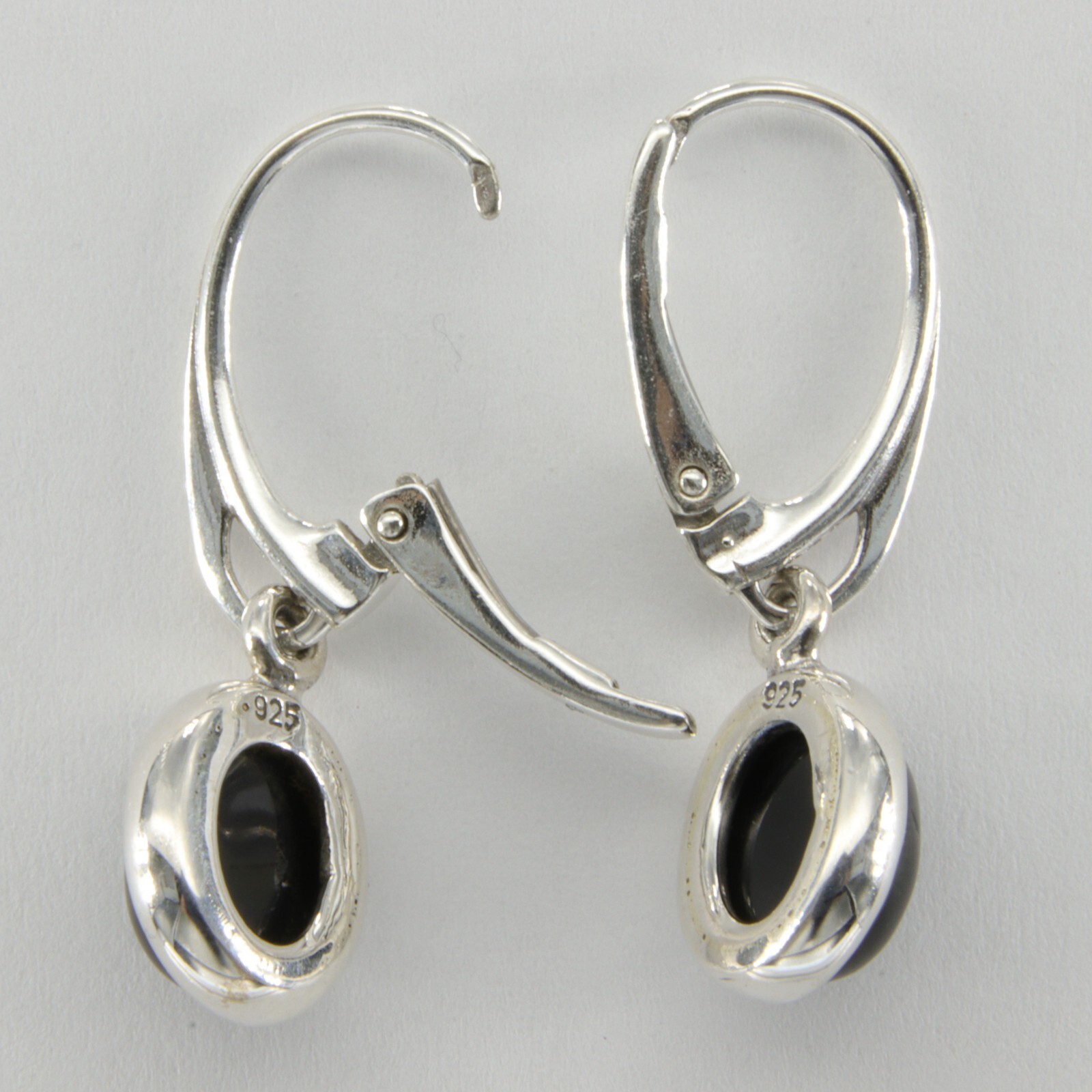Natural Oval BLACK ONYX Dangle Earrings - 925 STERLING SILVER - Leverback 32e