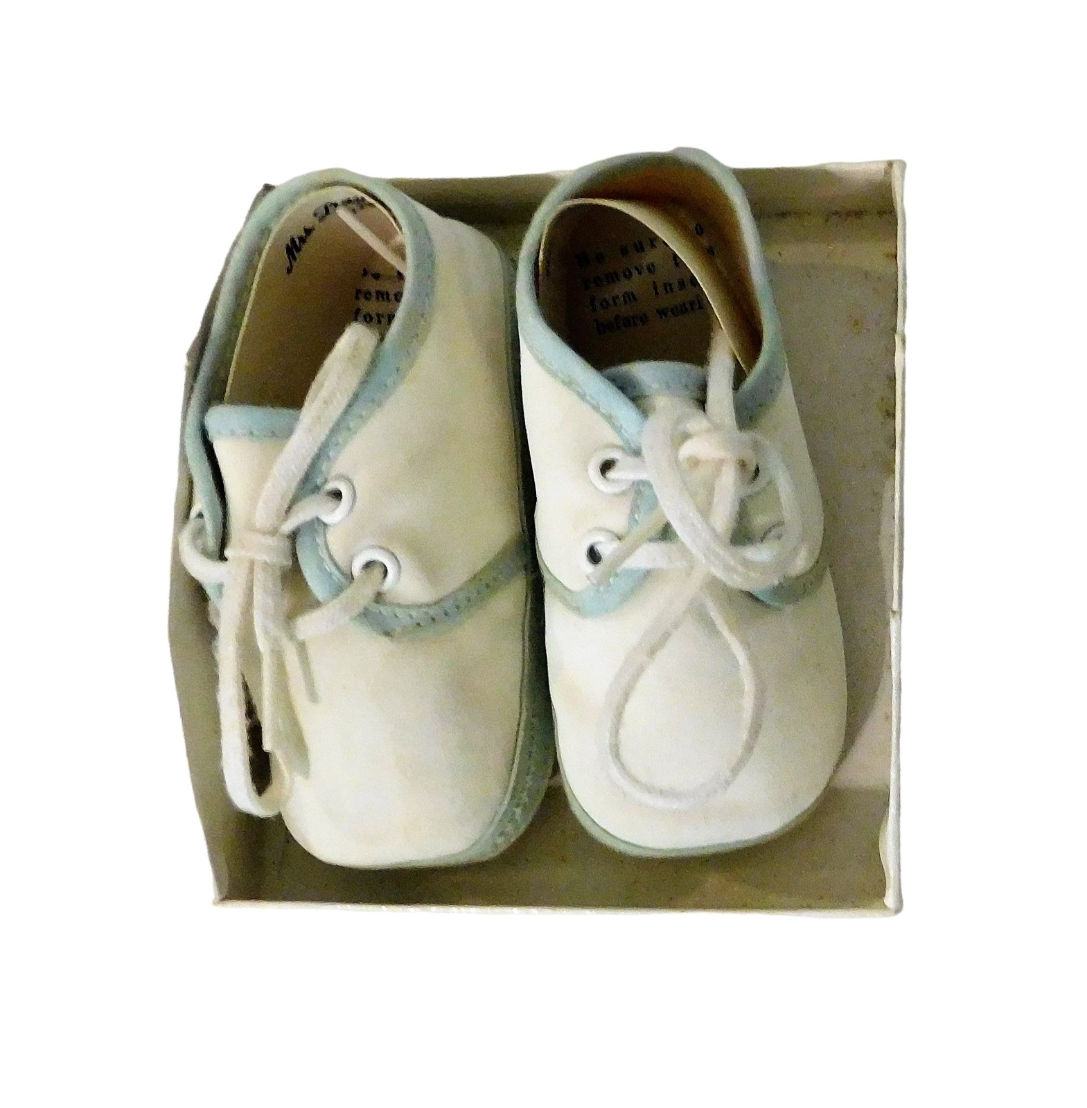 Vintage Mrs. Days Ideal Baby Shoes Size 2 White Blue Trim Lace Up