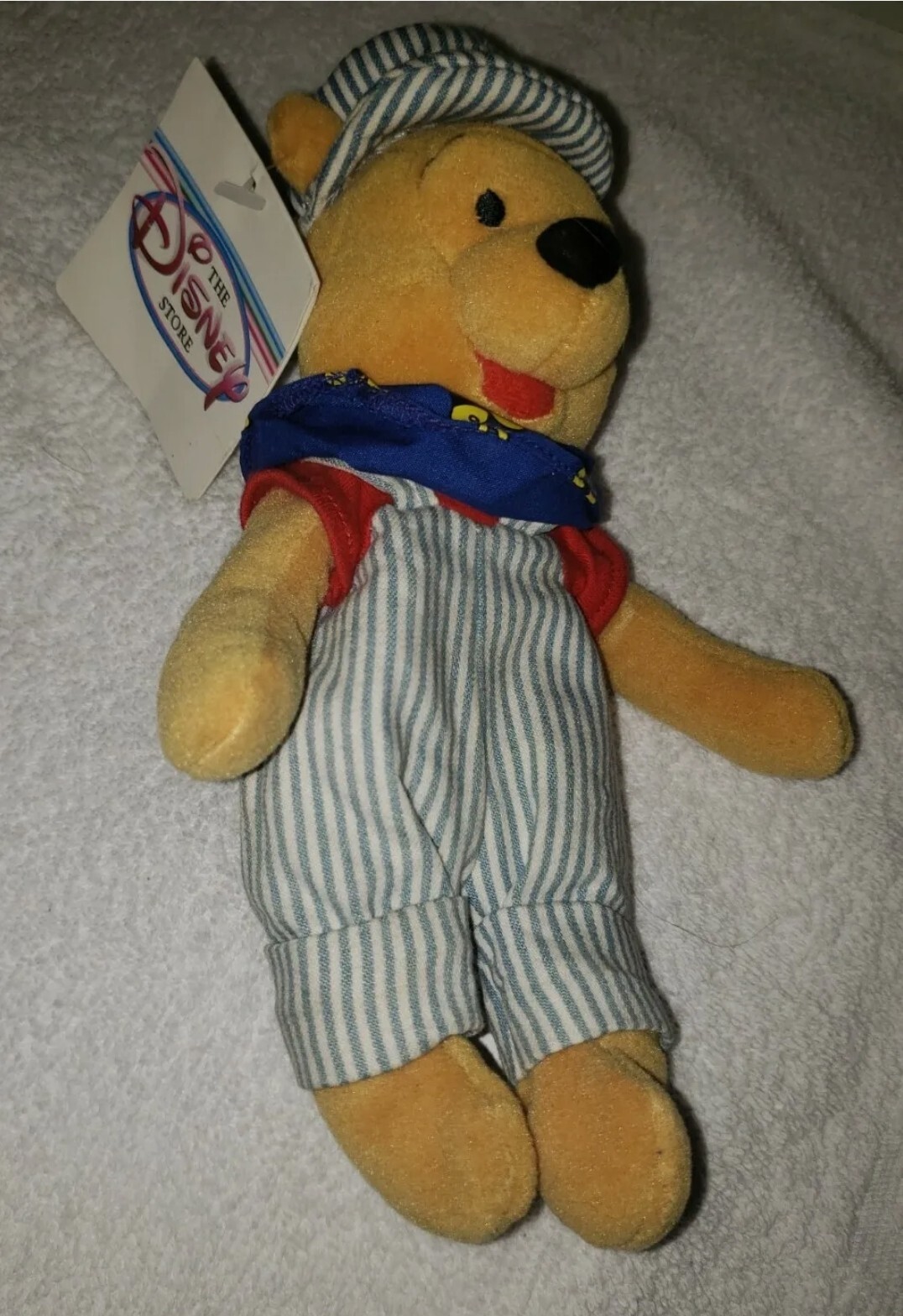 как выглядит VINTAGE DISNEY STORE CHOO CHOO WINNIE THE POOH 8" DISNEY MINI BEAN BAG PLUSH TOY фото