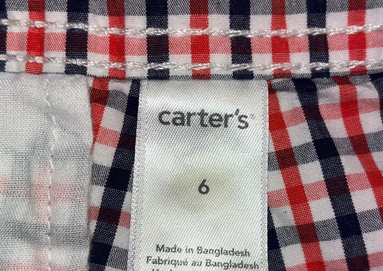 CARTER S BOYS RED NAVY BLUE CHECKERED SHORTS SIZE 6 EXCELLENT LD5 WORN ONCE