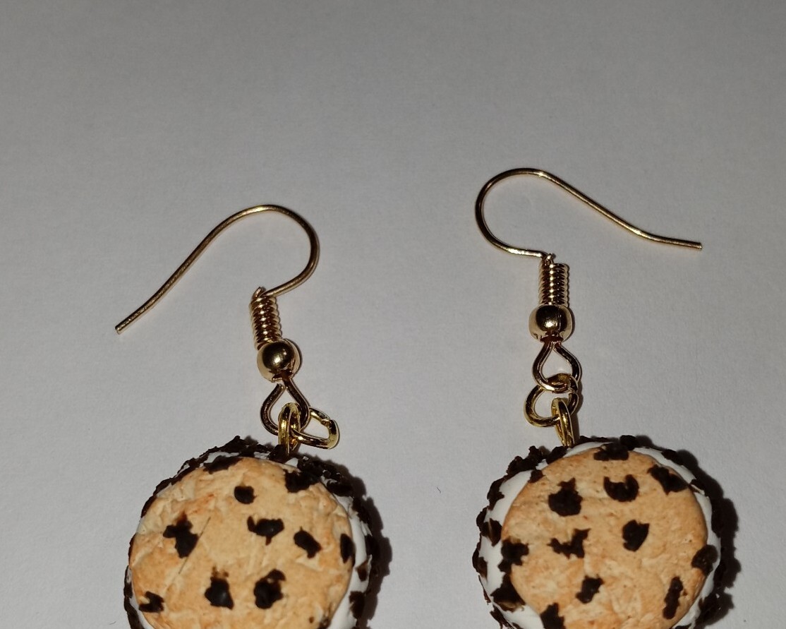 Chocolate Chip Cookie Sandwich Earrings Gold Tone Wire Ice Cream Cookie Kids