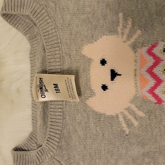 как выглядит OshKosh BGosh Kids Unisex Gray 100 Cotton Lightweight Knit Sweater Size 18M фото