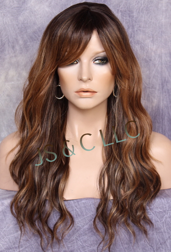 Human Hair Blend Full Wig Long Brown auburn blonde wavy Heat Safe WBUK som7002
