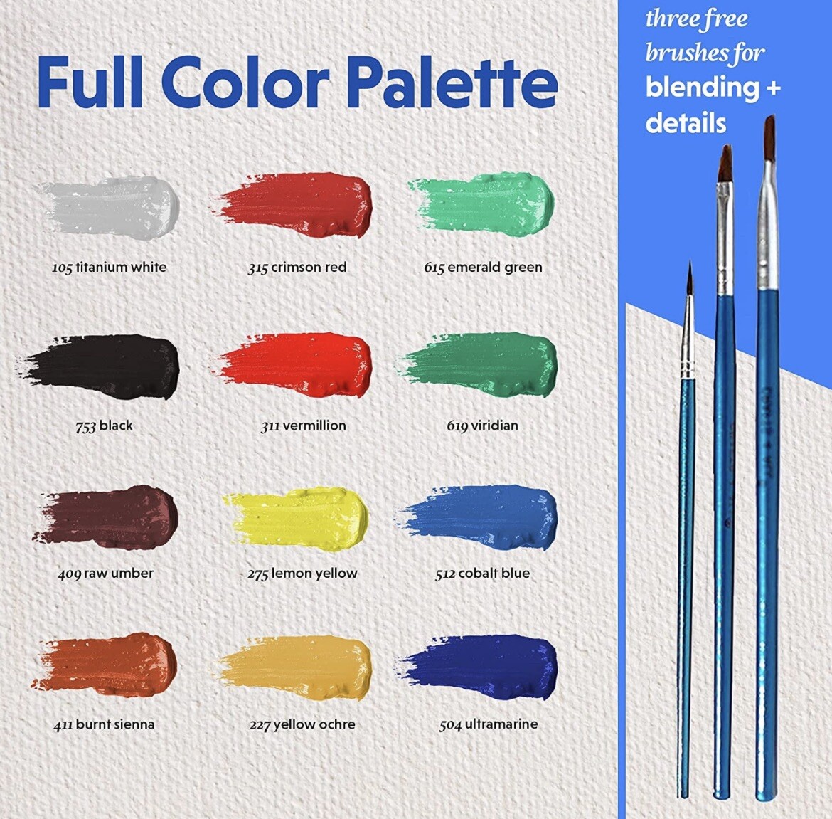 Acrylic Paint Set 12 Colors 3 Brushes Perfect For Canvas, Wood, Ceramic Craft