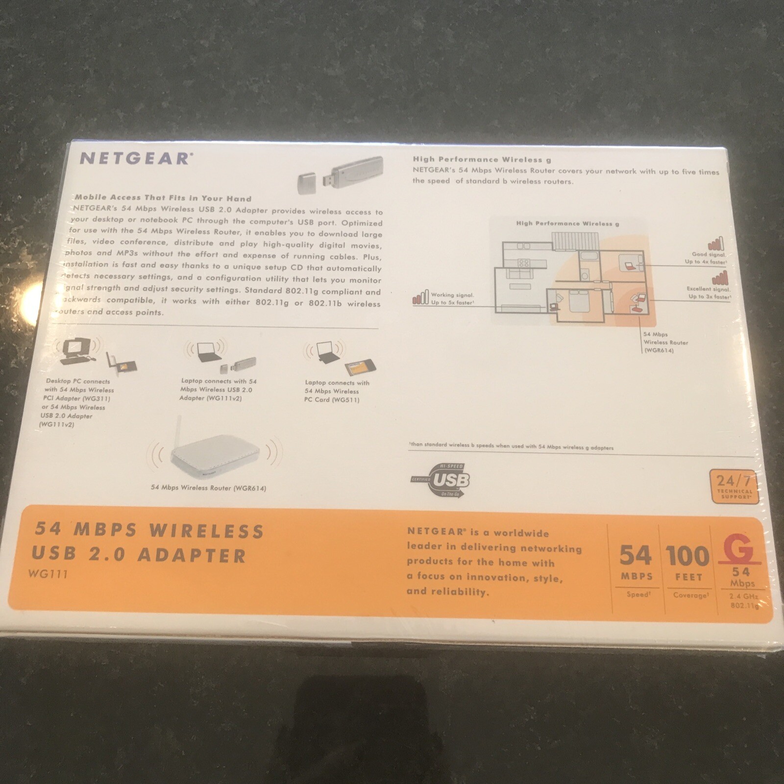 NETGEAR WIRELESS G USB 2.0 ADAPTER WG111 FAST LONG RANGE 54 Mbps 2.4 GHz