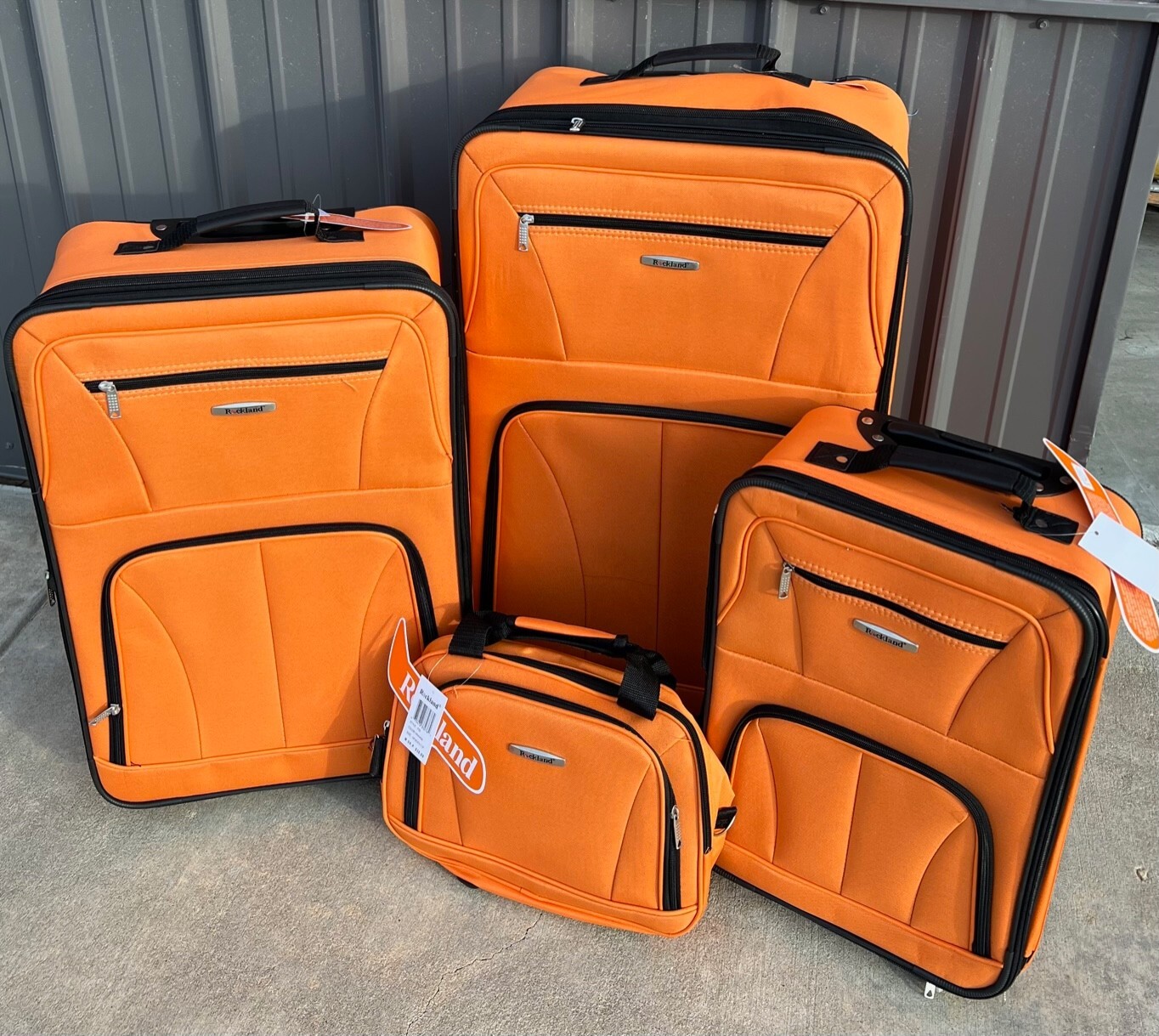 • Rockland Journey Softside Upright Rolling Luggage Set Orange 4 Piece 14/19/24/28