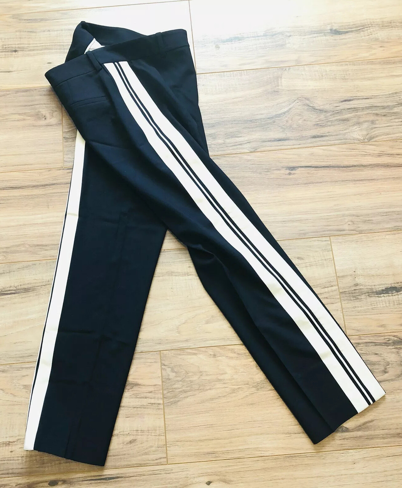 как выглядит 295 VINCE. Tuxedo Striped Trousers Pants Tropical Wool Navy Sz 4 Blake Lively фото