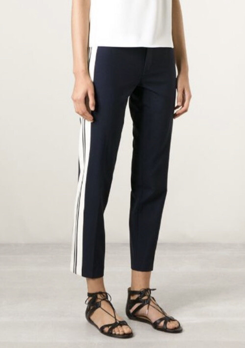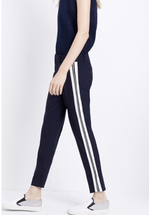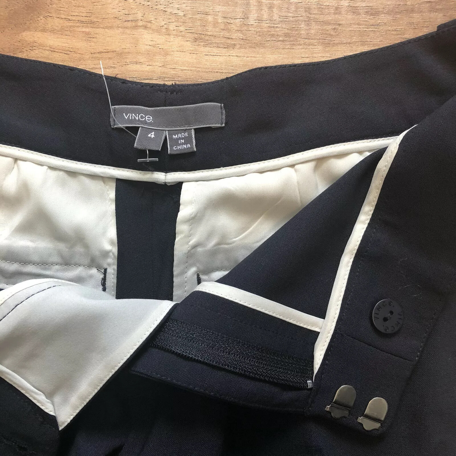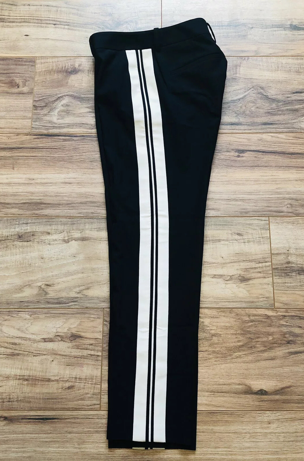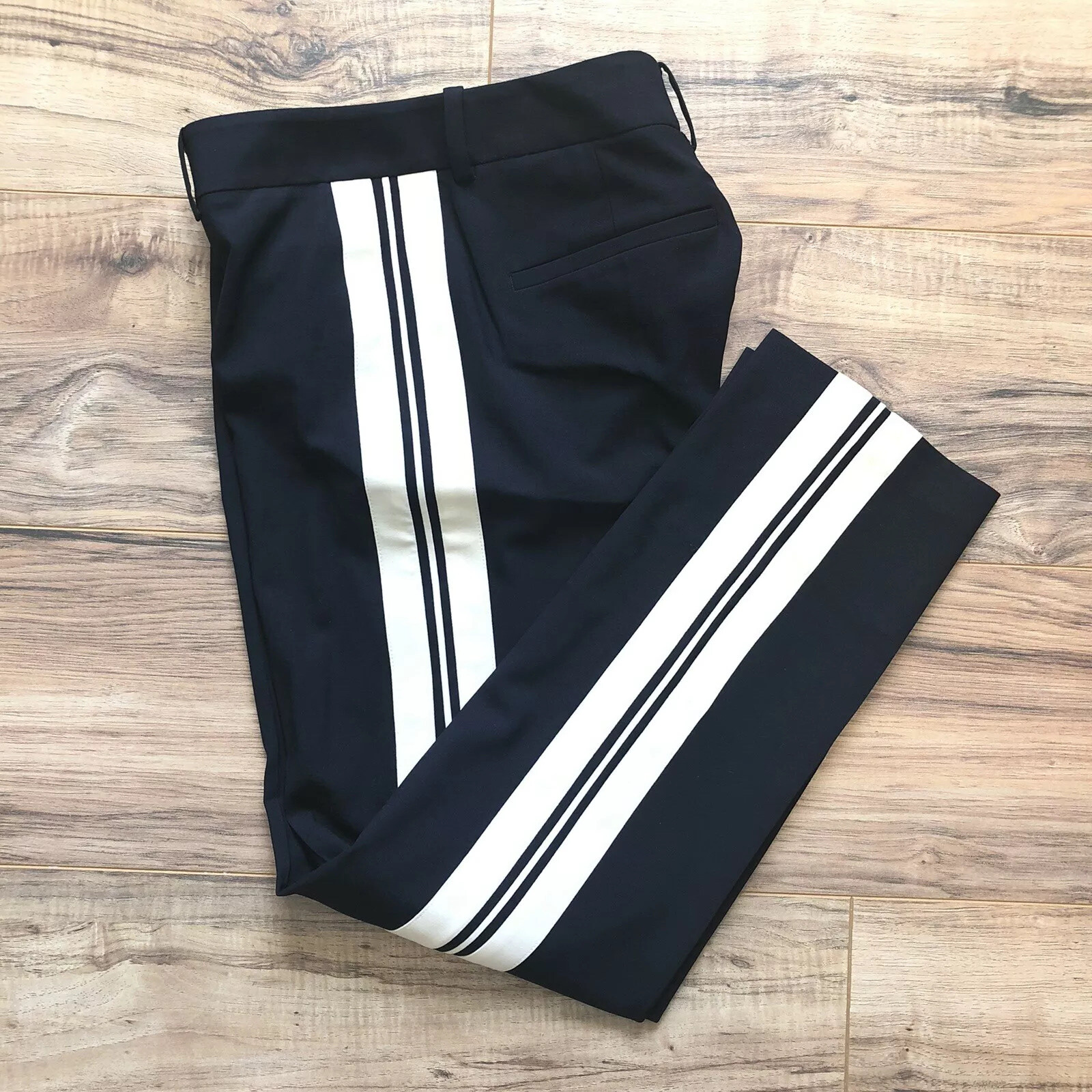 295 VINCE. Tuxedo Striped Trousers Pants Tropical Wool Navy Sz 4 Blake Lively