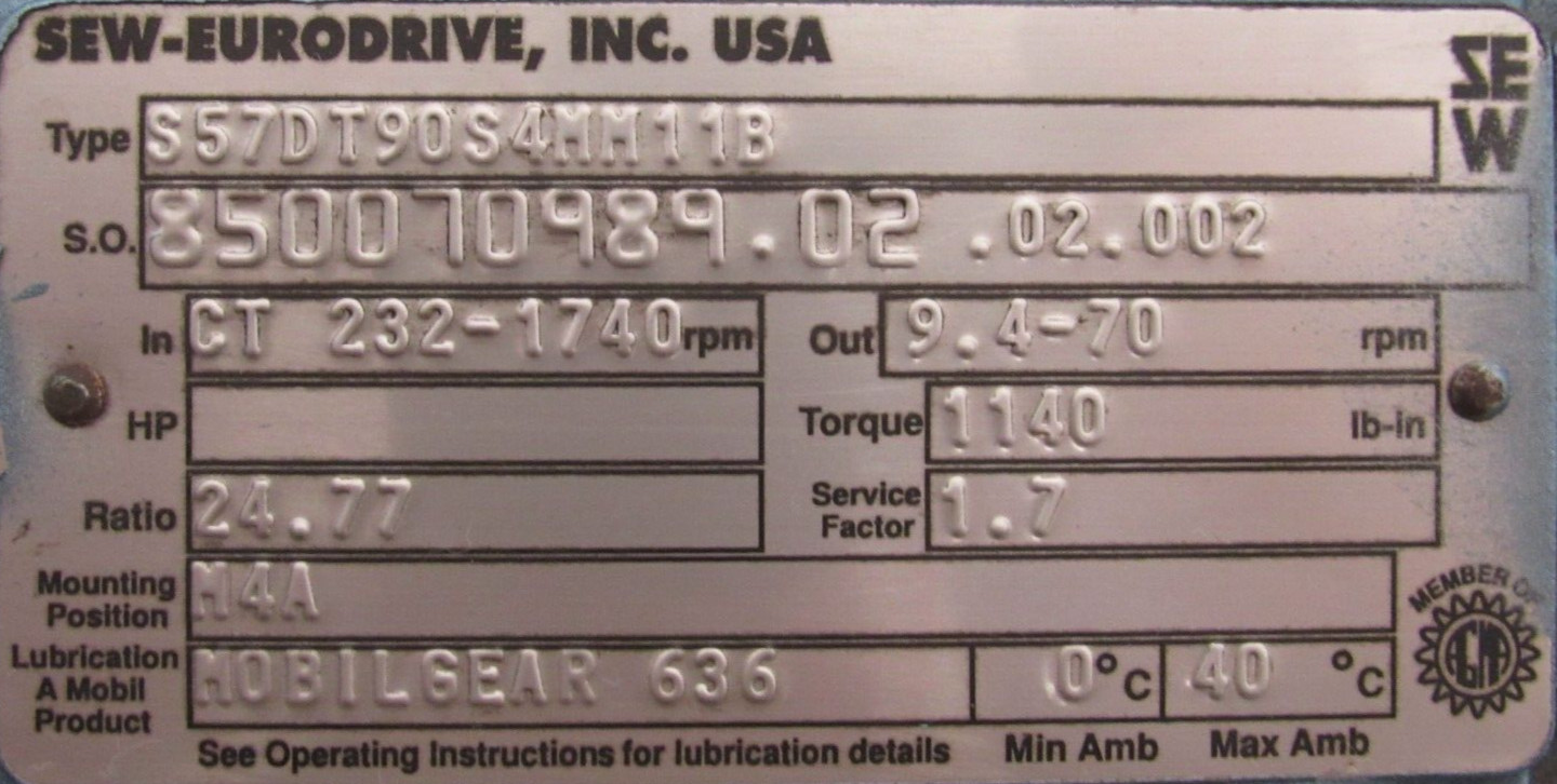 NEW SEW EURODRIVE S57DT90S4MM11B GEARMOTOR 24.77:1 460V 1.5HP DFT90S4MM11B