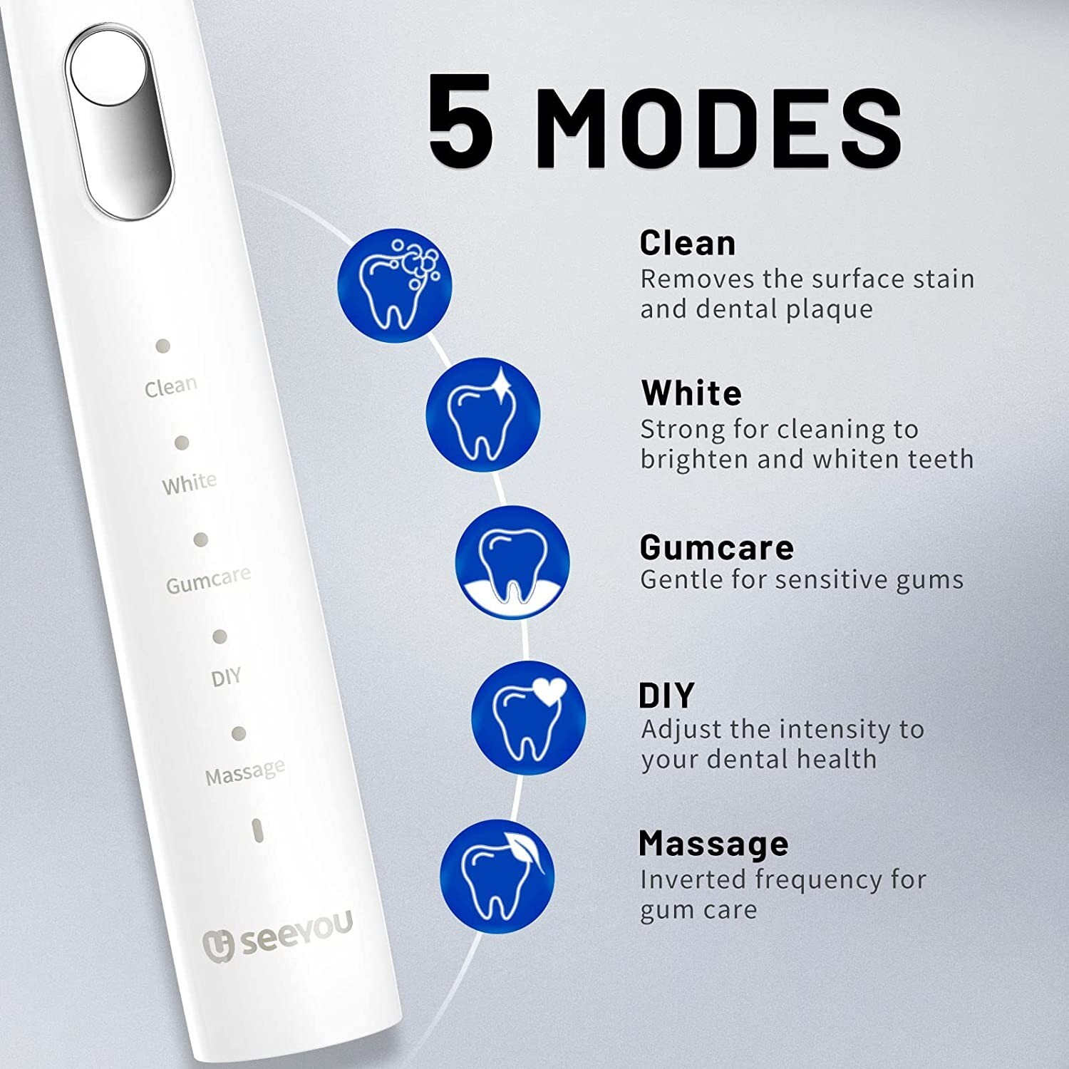 Seeyou Electric Toothbrush Adults Rechargeable Sonic Toothbrush with 5 Mode App