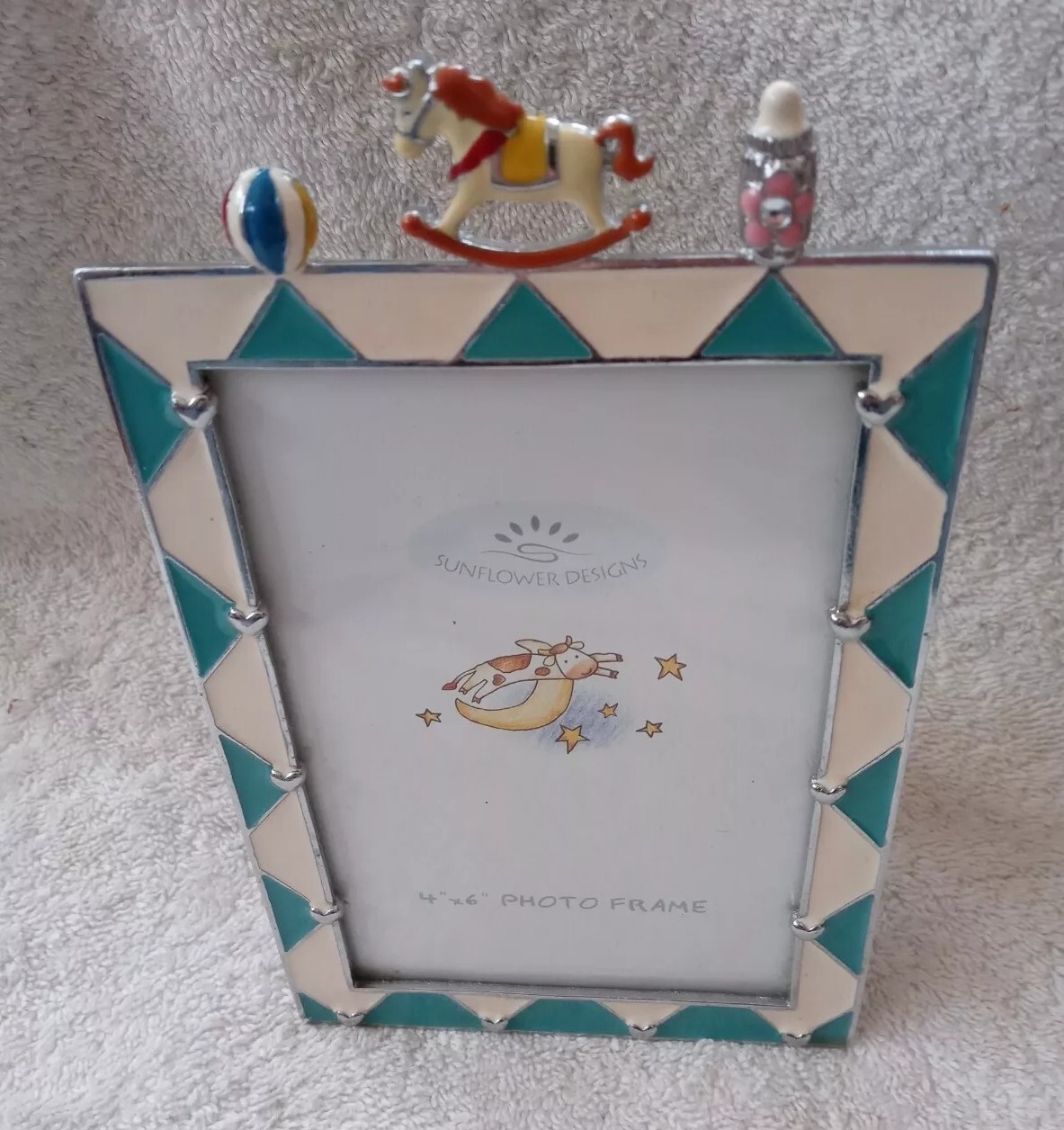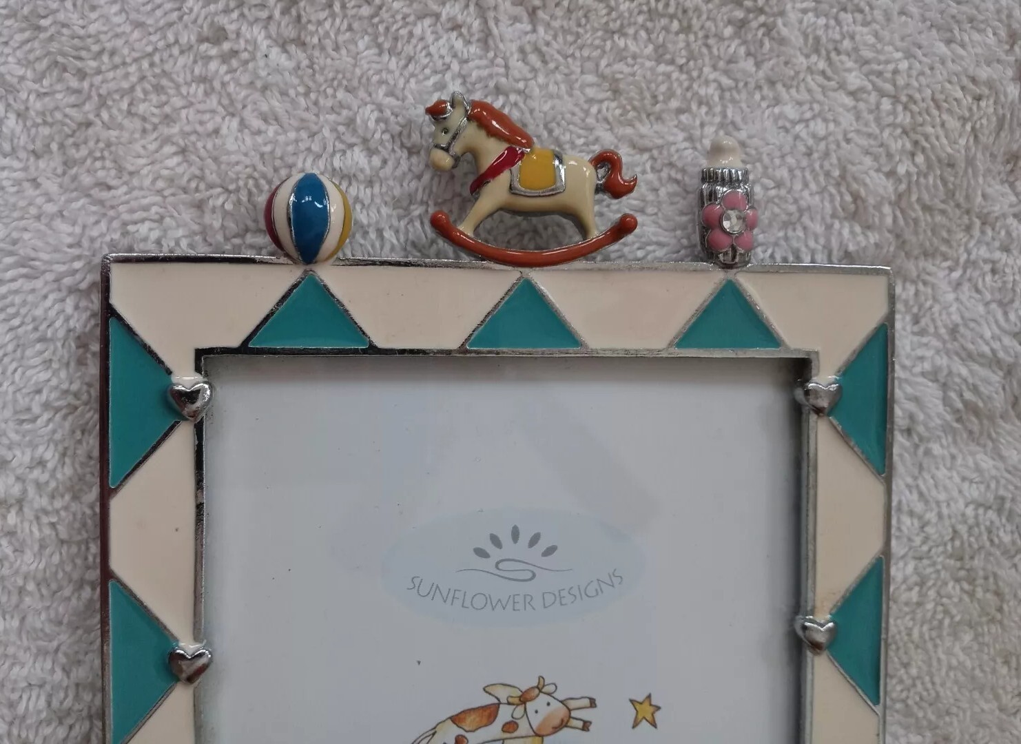 как выглядит Blue and white enamel photo frame Decorative 3D Baby Toys Mother