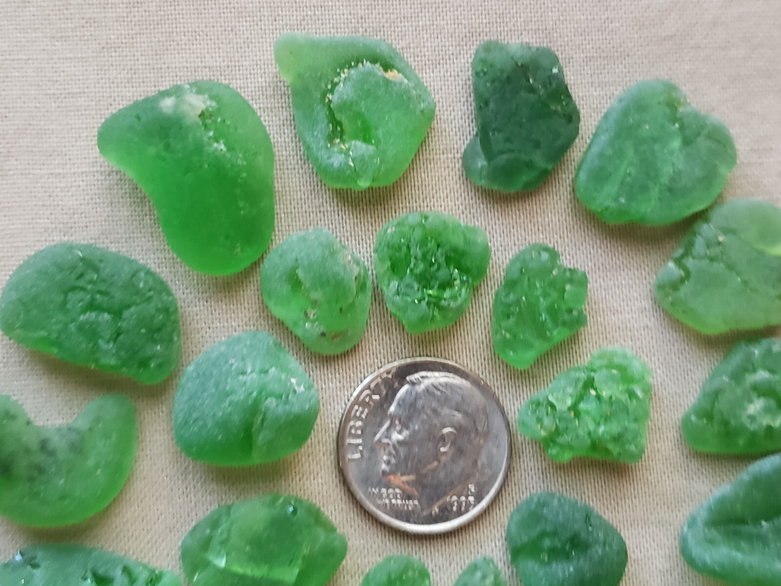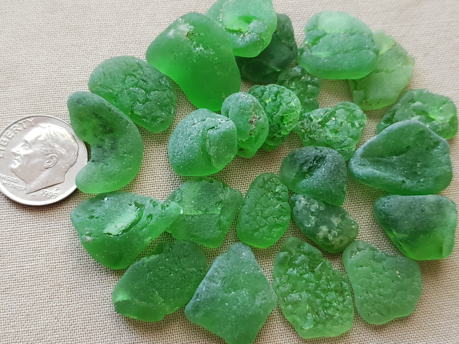 GENUINE BEACH SEA GLASS SURF TUMBLED KELLY GREEN FROSTED LAVA BONFIRE SMALL D1