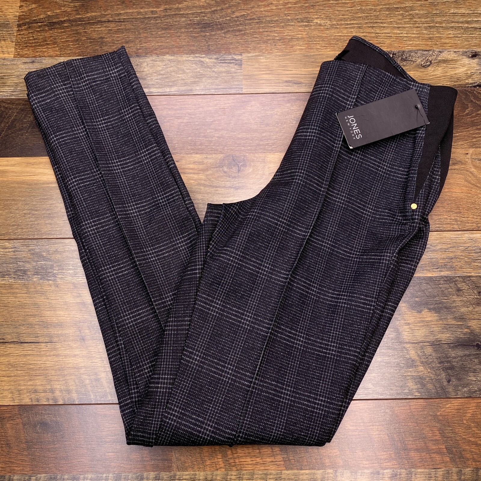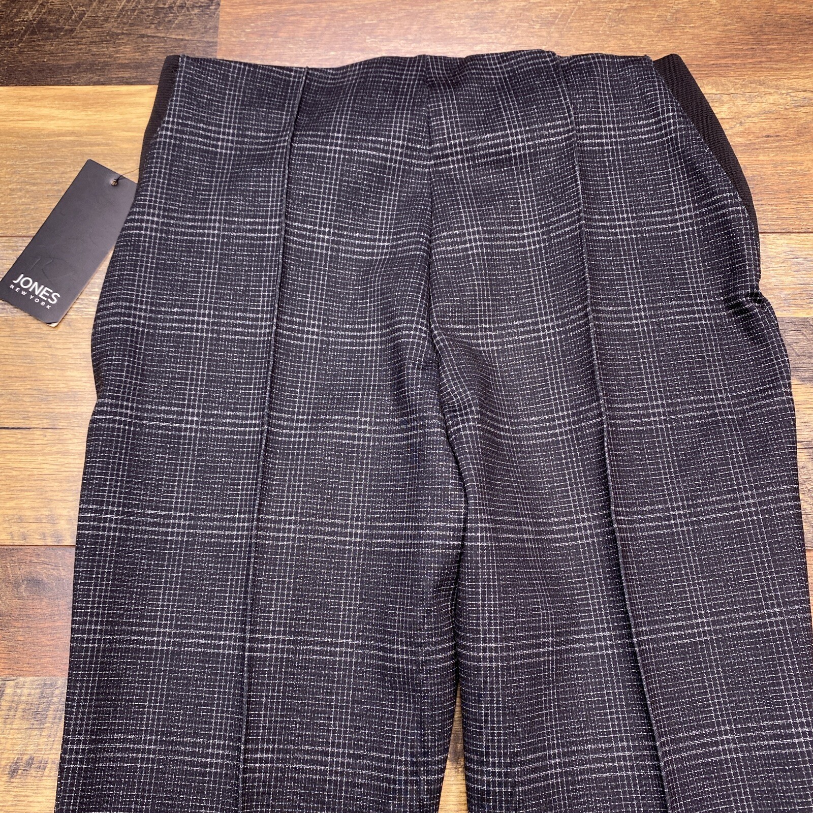 как выглядит Jones New York Pants Small Black Elastic Waist Plaid Stretch New фото