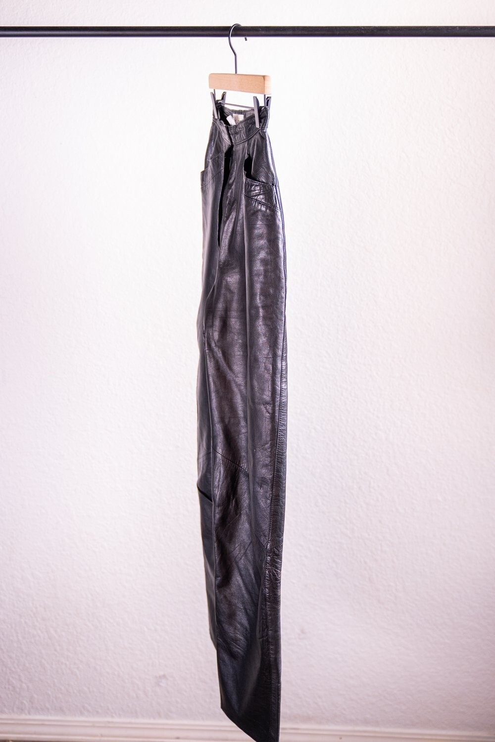как выглядит Vintage Black High Waist Leather Pants Size 6 фото