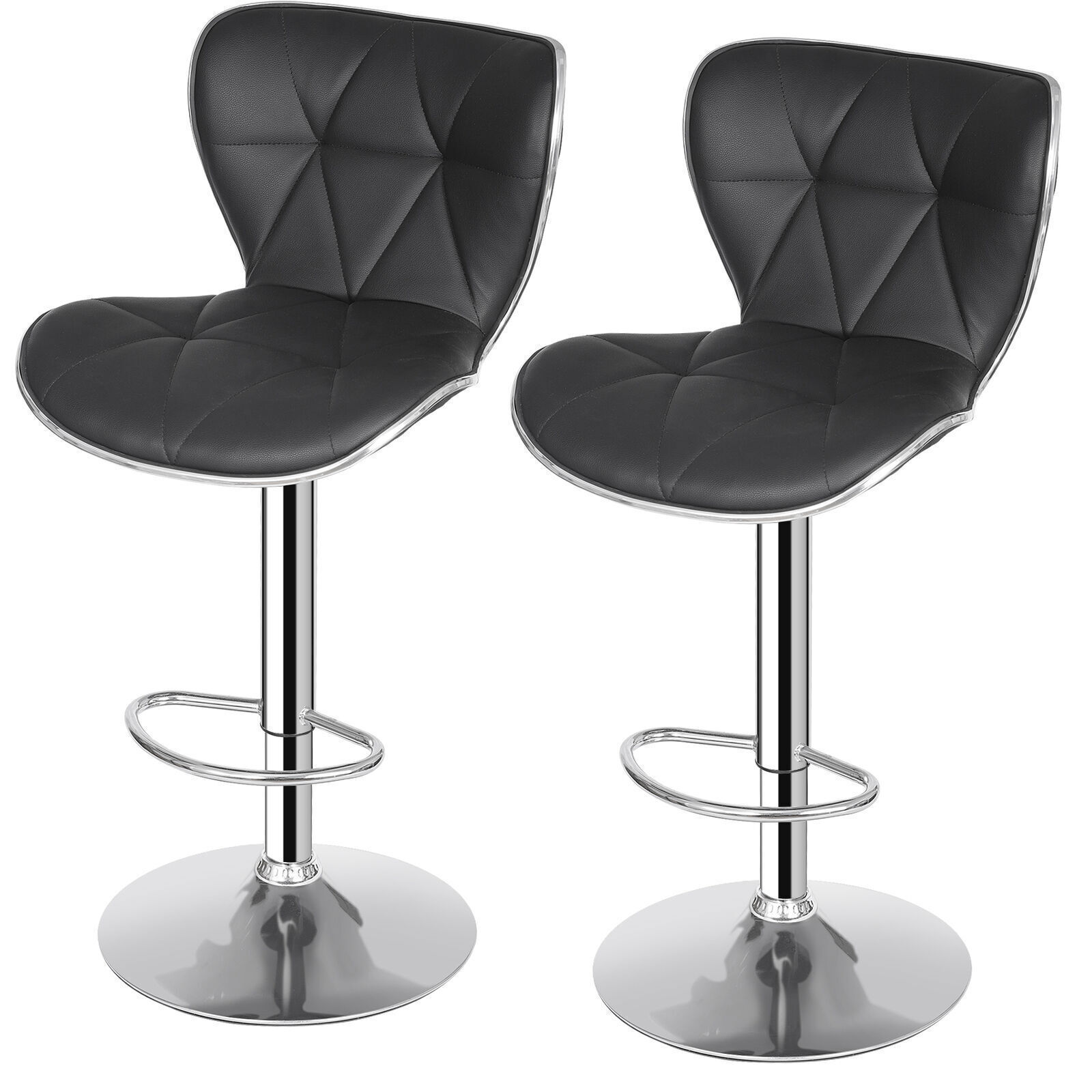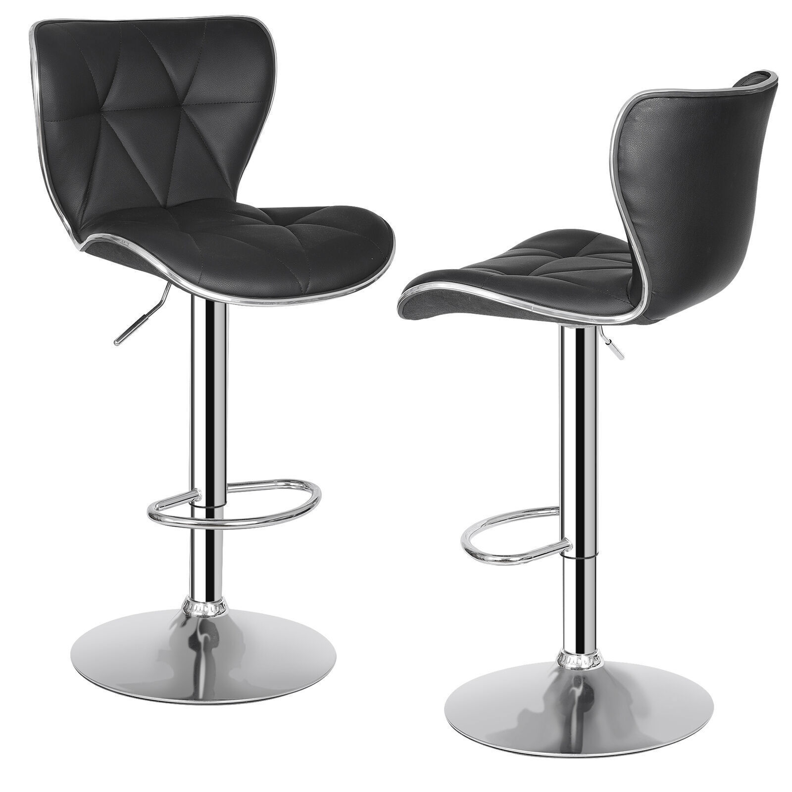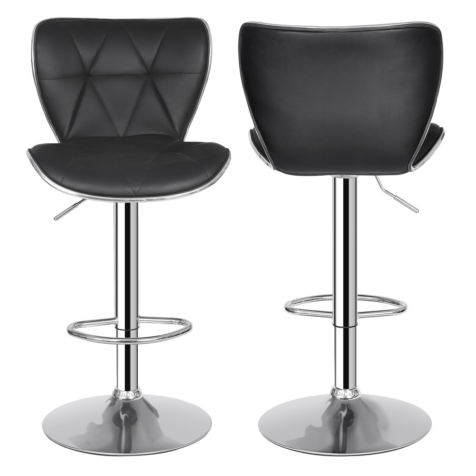 2X Adjustable Swivel Bar Stools Counter Bar Stools PU Leather w/ Back Black