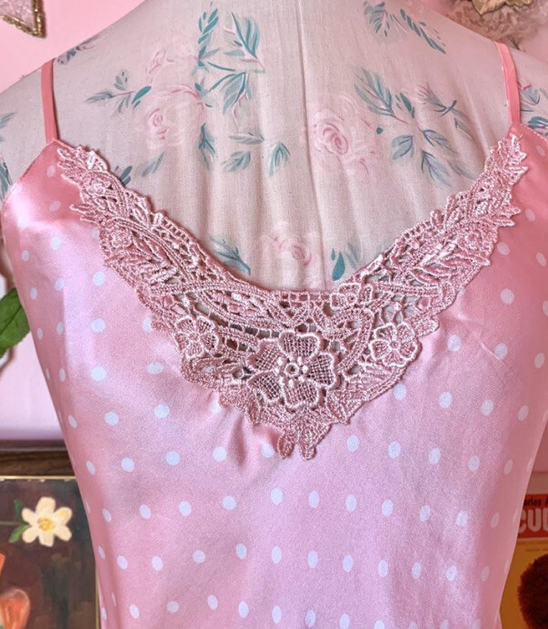 vintage y2k pink polka dot silk slip dress M/L