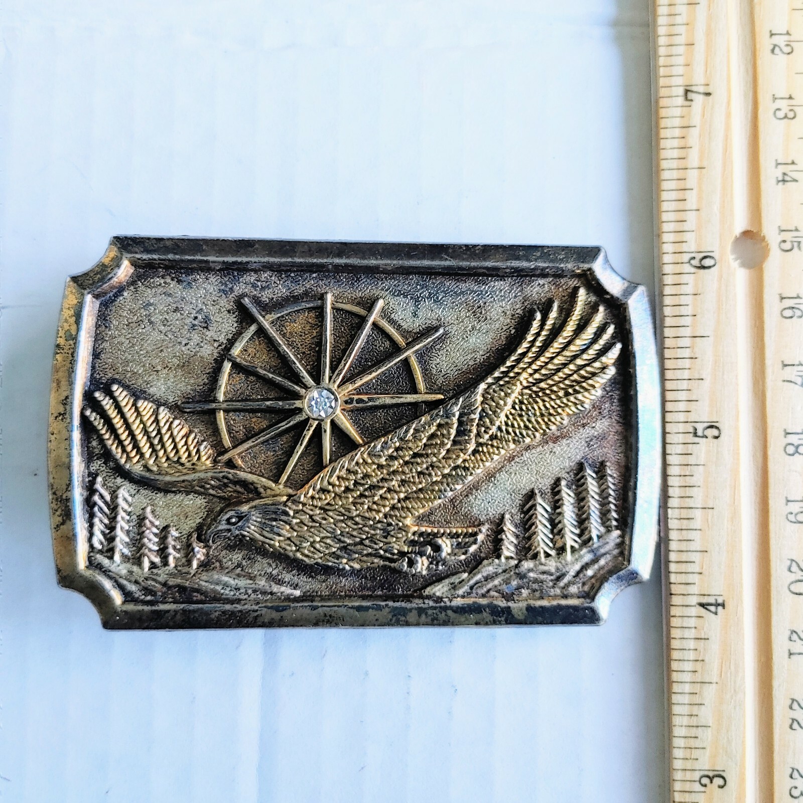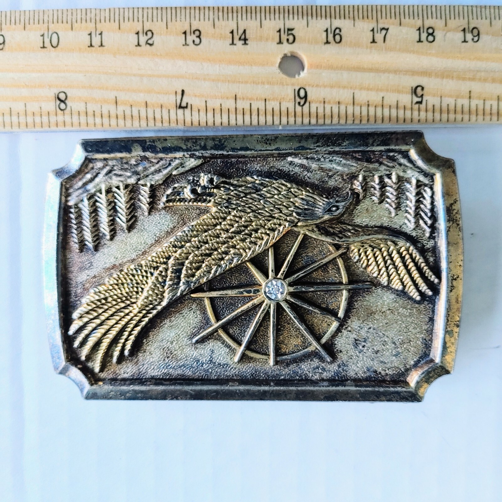 как выглядит Vintage Jeweled Eagle Gold Tone Belt Buckle Sunburst фото