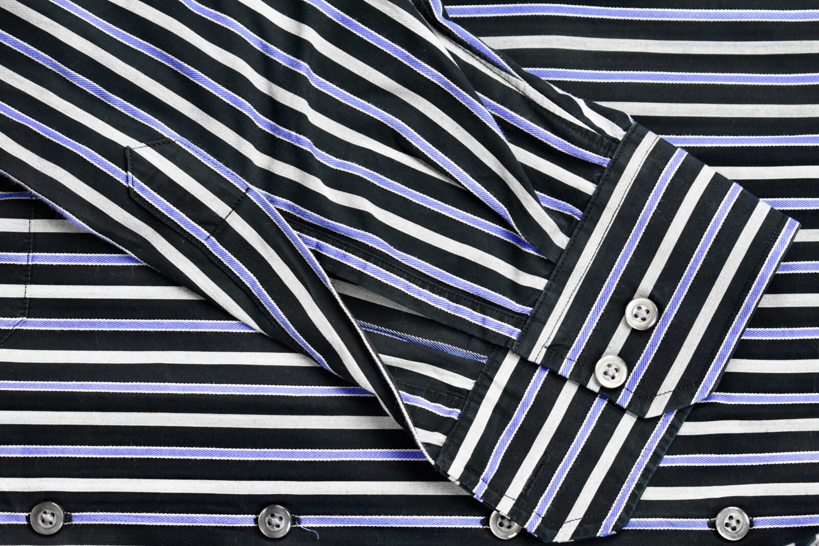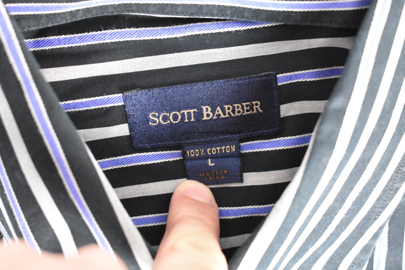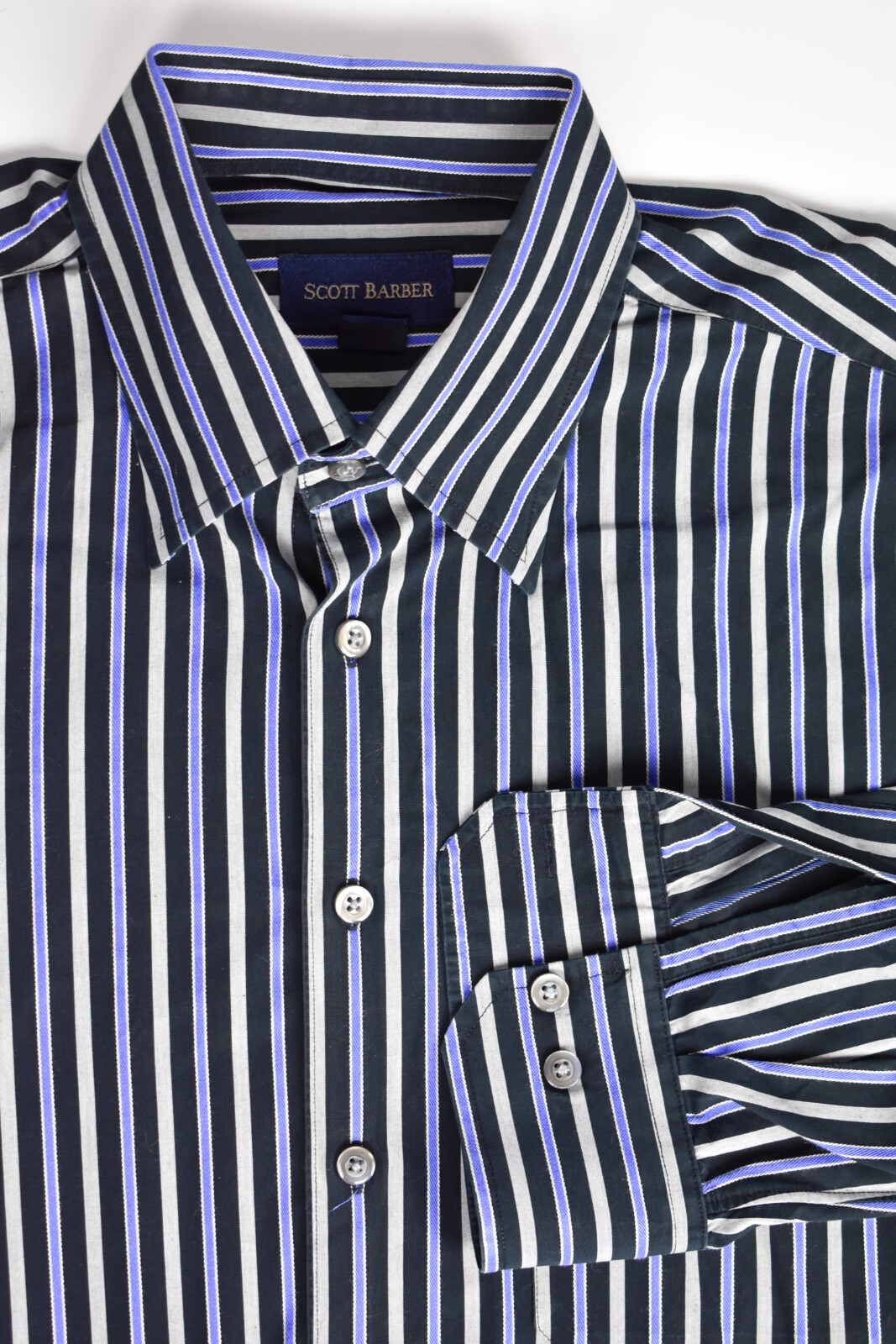 как выглядит Scott Barber Black/Gray/Blue Striped Button Down Collar Dress Shirt Size: Large фото