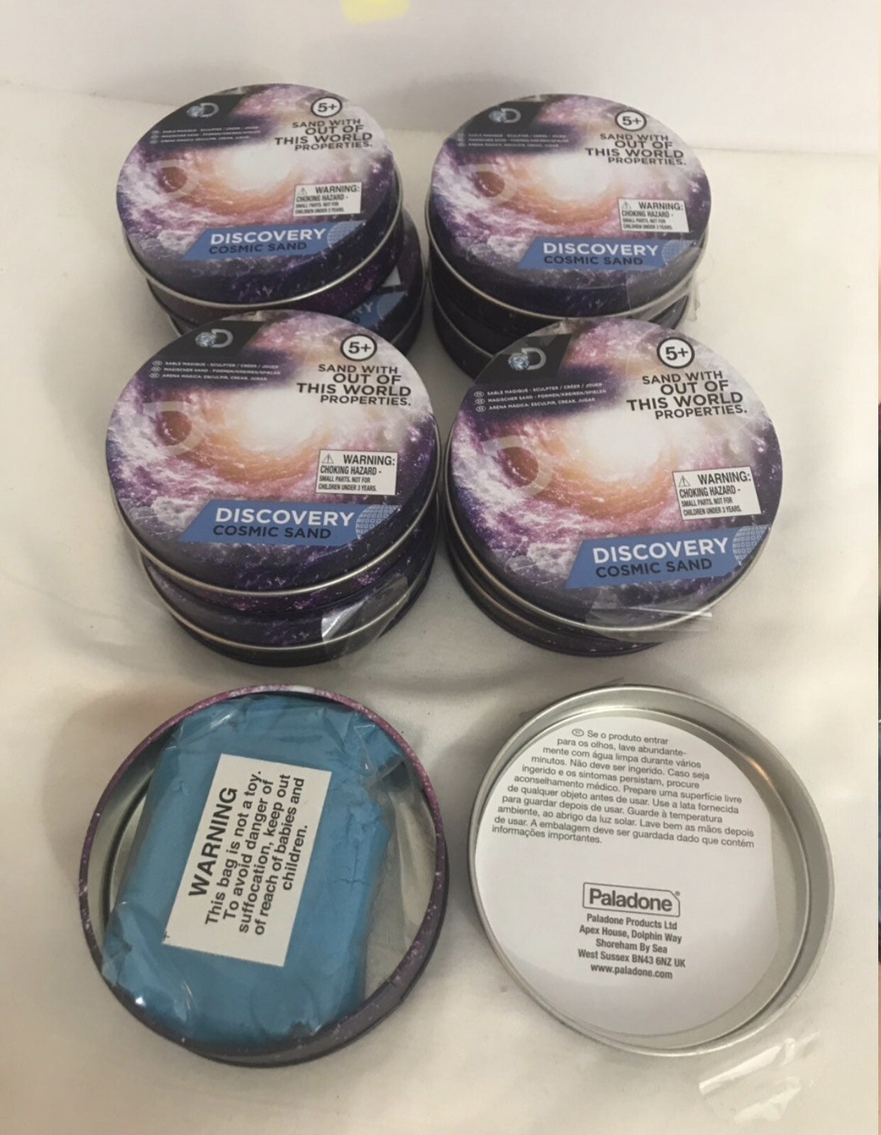 как выглядит DISCOVERY CHANNEL Cosmic Sand LOT OF 9 Blue Sealed Bags In Tin Paladone фото