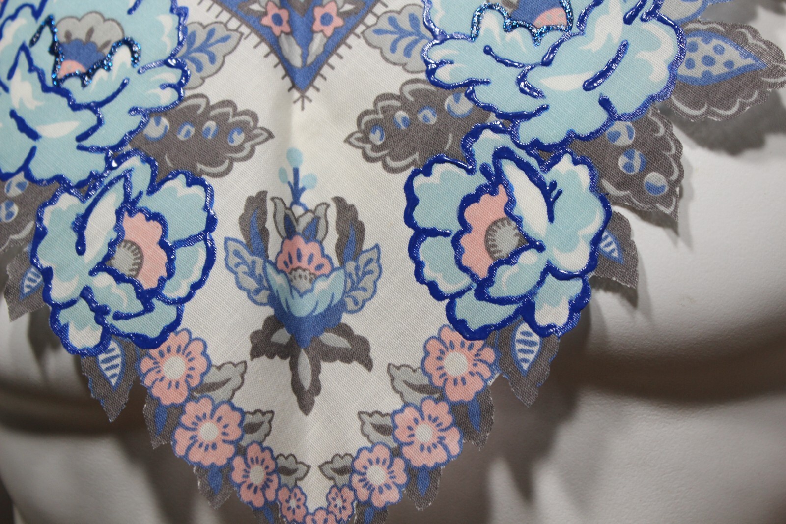 Vtg Bandana Collar with Painted Floral Embellishments Female