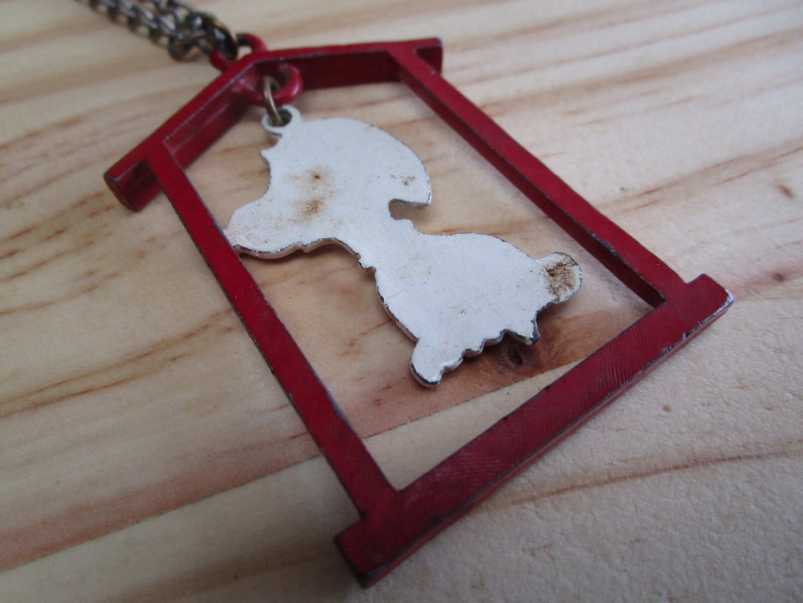 Vintage / Antique Peanuts SNOOPY metal dog house Necklace peanuts