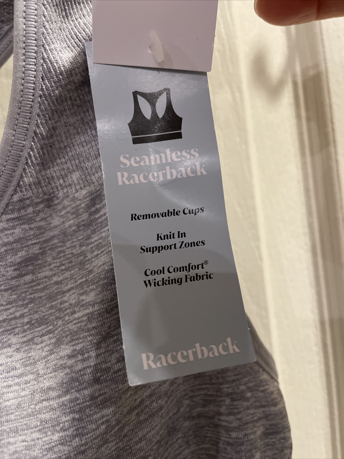 Hanes M Sport Women's Seamless Racerback Sports Bra 38 Light Gray Nwt
