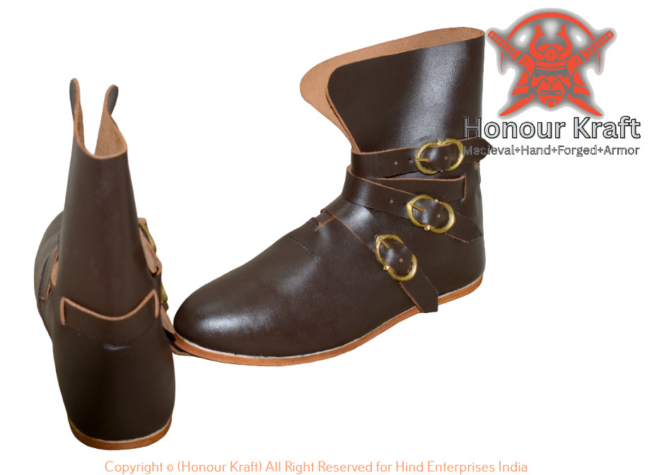 как выглядит Historical Costume Brown Leather Viking Ankle Boots - Medieval Armor Shoes фото