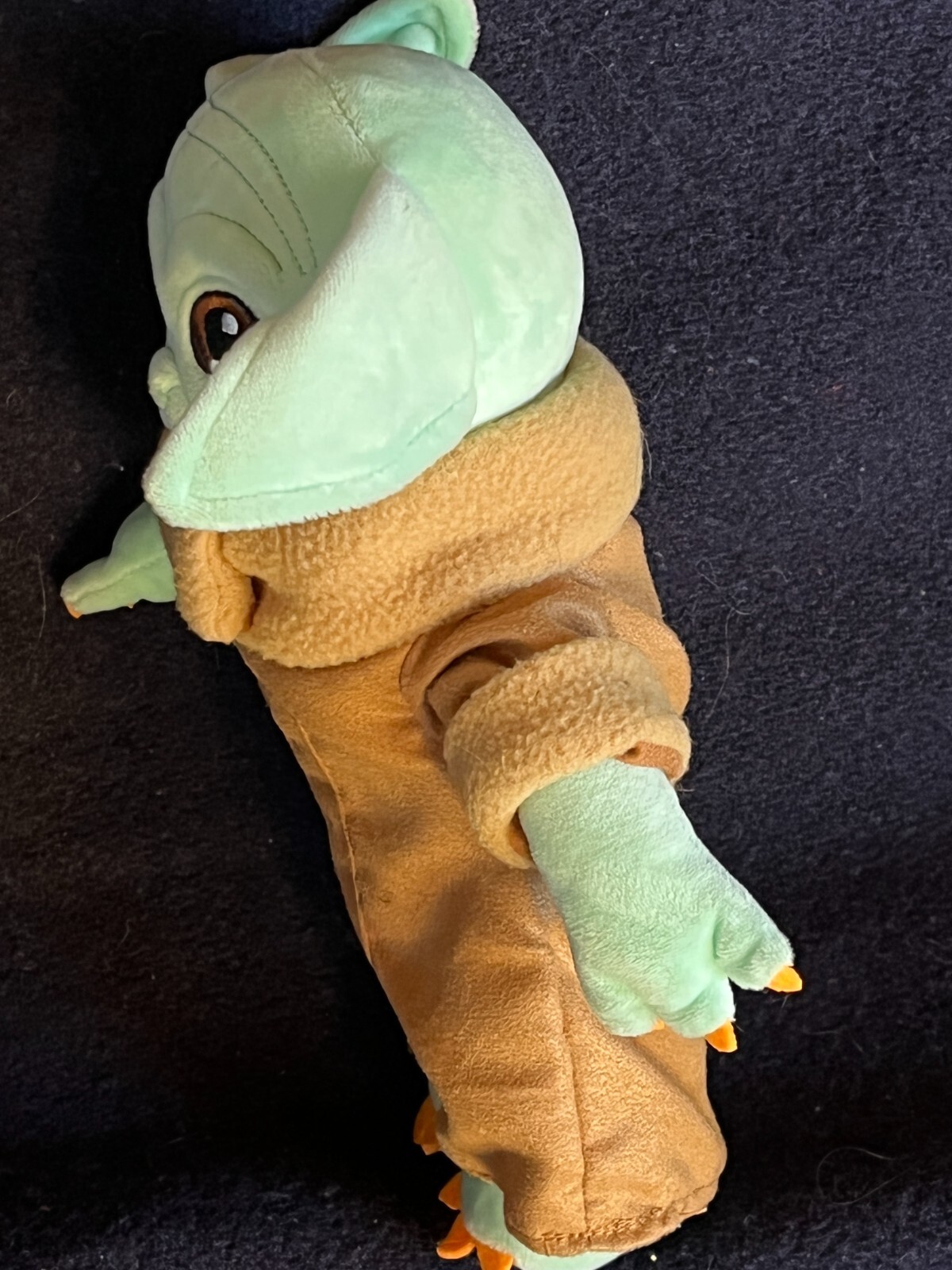 как выглядит Gently Used Mint Green Plush Star Wars Baby Yoda in Tan Coat Stuffed Character фото